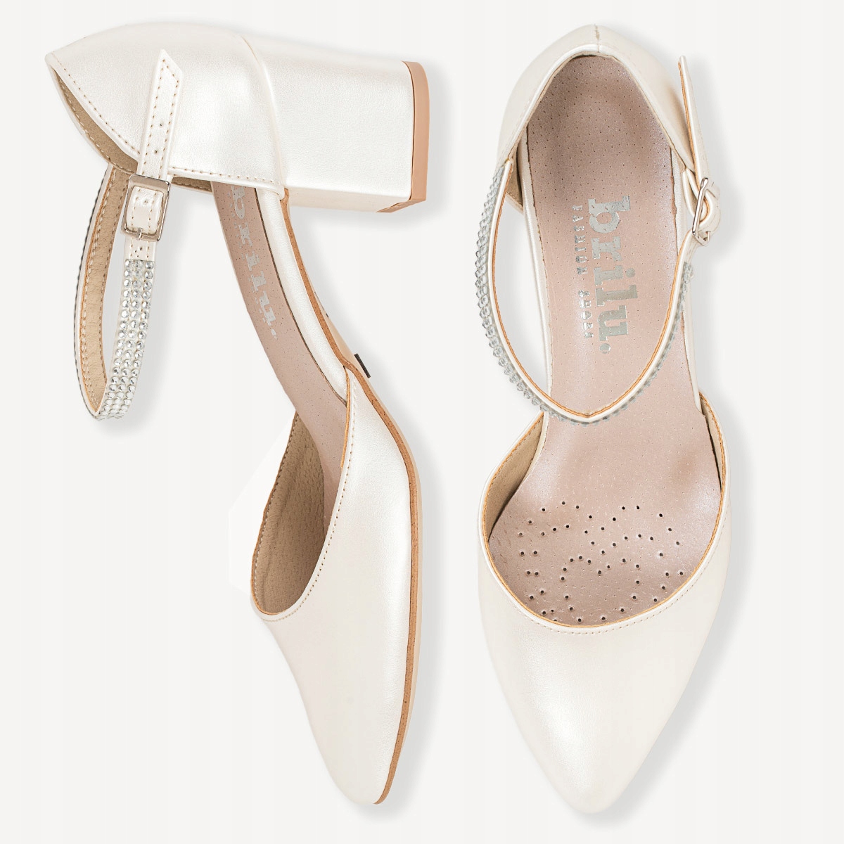 ПОЛЬСЬКІ ВЕСІЛЬНІ ЧУФЛІ BRILU З ЦИРКОНІЄВИМ РЕМІНЦЕМ CELINE IVORY 39
