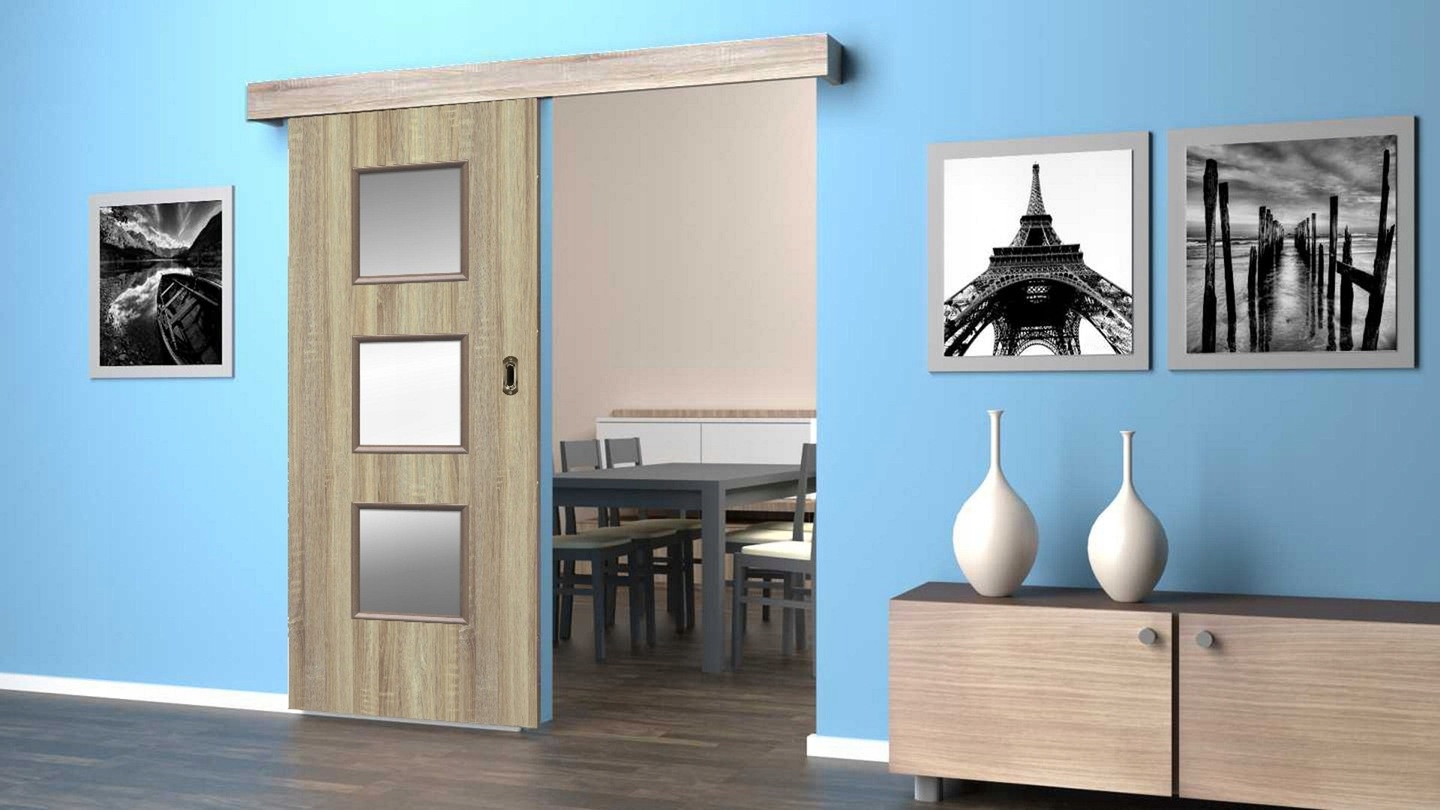 Двері як цілісна настінна розсувна система дозволяє легко та просто встановити без порушення конструкції стіни.
