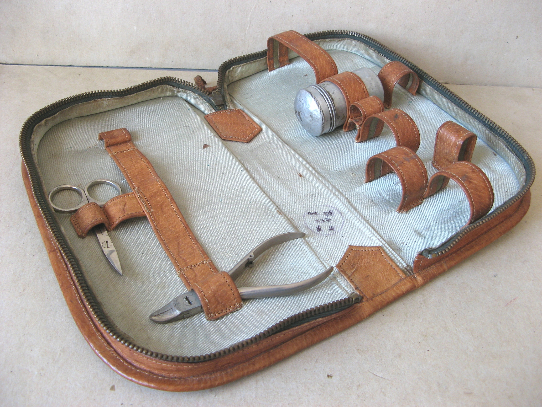 Польський старовинний ШКІРЯНИЙ чохол для ПРЕДМЕТІВ ДЛЯ ГОЛІННЯ та інших ПРЕДМЕТІВ ТУАЛЕТУ для офіцера польської армії до 1939 року.