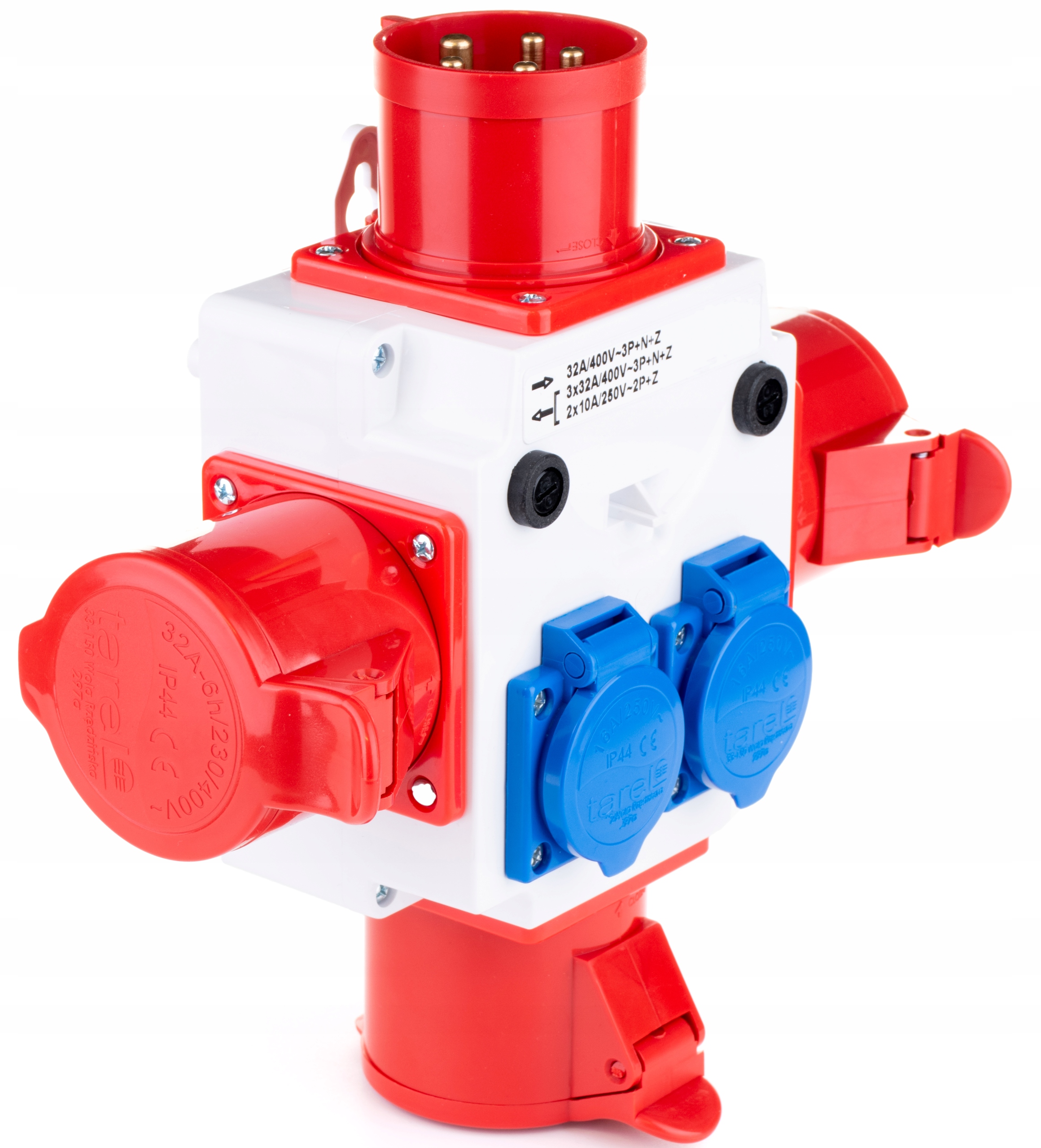 Розповсюджувач міцності дозволяє зручне та швидке з'єднання багато пристроїв одночасно. Він оснащений штекетою 32A / 400V та 5 розетками: 2x 10a / 250V та 3x 32A / 400V. Він був виготовлений з пластику стійкого до УФ -випромінювання , а ступінь захисту від житла - ip44 . Це робить його захищеним від доступу на 1 мм та більші об'єкти та від бризок води з будь -якої сторони. Він призначений для встановленого монтажу, але його також можна використовувати в портативному вигляді. Переваги силового колектора