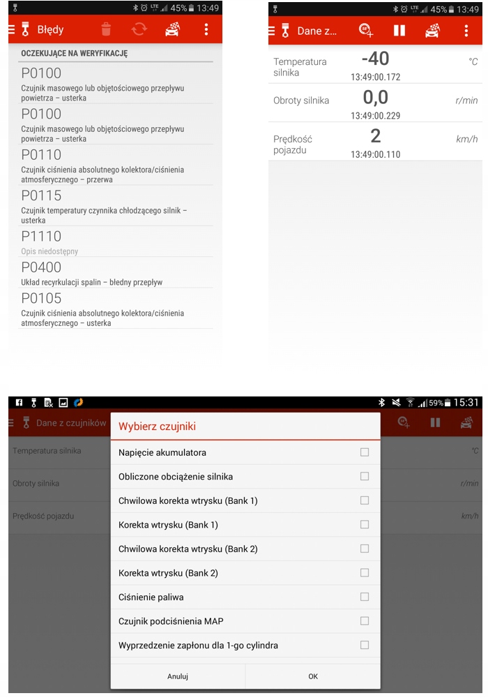 - Зчитування параметрів роботи двигуна в реальному часі (LiveData) в аналоговій формі, графіках або тексті