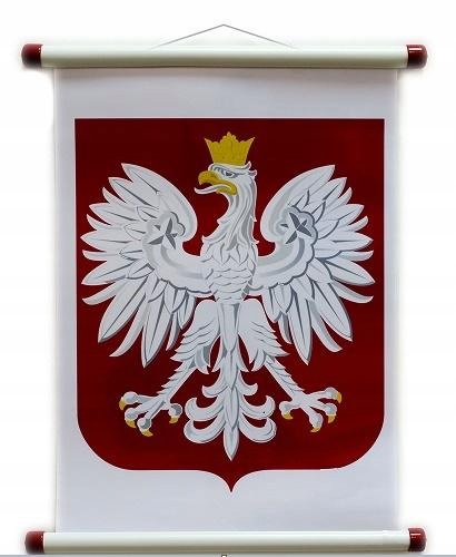 Польський герб ламінований з обох боків і обрамлений ПВХ трубками. Готовий повісити на стіну. Ідеально підходить для шкіл та інших громадських місць.