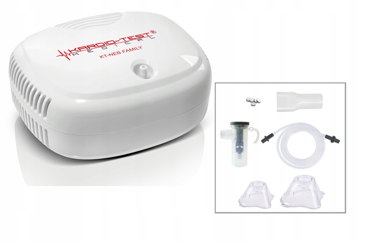 Компресорний інгалятор KARDIO-TEST KT-NEB FAMILY - це медичний виріб, призначений для інгаляційної терапії дихальних шляхів, що полягає в застосуванні інгаляційних препаратів за призначенням лікаря, наприклад Будесонід, Пульмікорт, Фліксотид, Беродуал, Міфлонід. Небулайзер і повітряний компресор, працюючи разом, виробляють аерозольний туман, призначений для вдихання дихальних шляхів пацієнта і, як наслідок, лікують респіраторні захворювання. Апарат оснащений двома масками різного розміру, що дозволяє ефективно використовувати обладнання як дітям, так і дорослим. Інгалятор легкий і простий у використанні, а всі його компоненти зручно зберігати в чохлі.