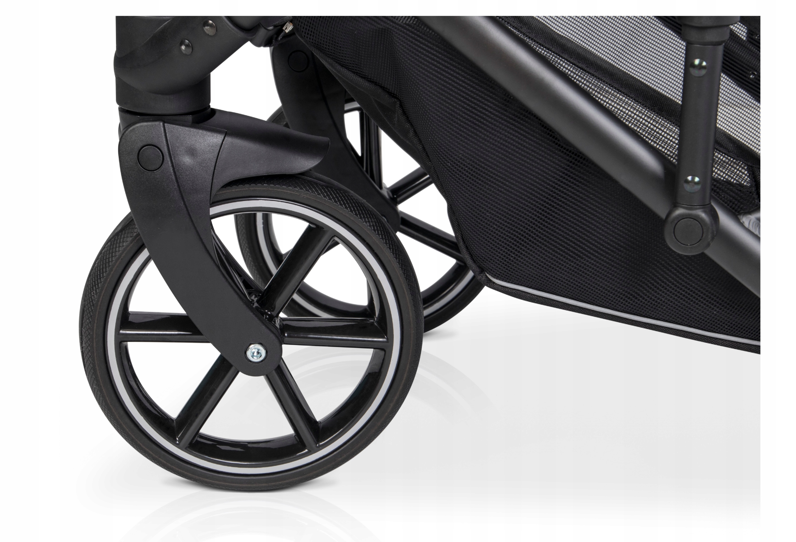 - три незалежні системи амортизації: регульована амортизація гондоли/сидіння, регульована амортизація задніх коліс і амортизація передніх коліс,