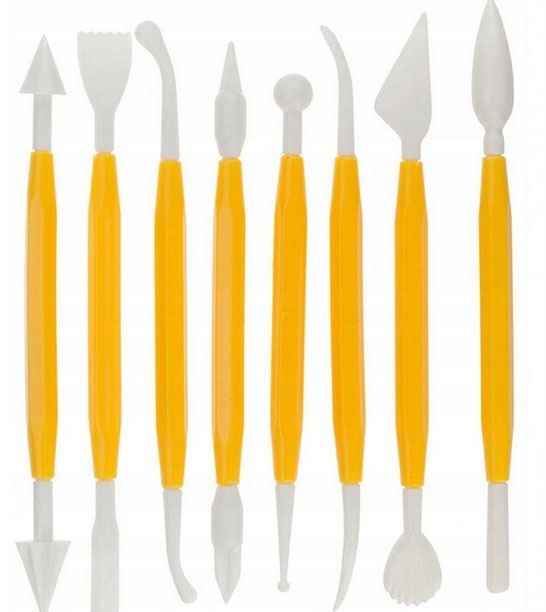 - Набір з 8 інструментів (16 різних насадок) для ліплення марципану та всіх пластичних кондитерських мас.
