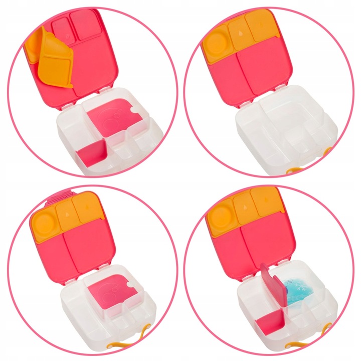 ⏩Lunchbox b.box надає кілька інтелектуальних рішень. Ви можете відрегулювати або видалити рухомі розділювачі, щоб у коробку помістився, наприклад, цілий шматок банана чи яблука. Велике квадратне відділення ідеально підходить для смачної пасти з овочами або бутербродів, а його дизайн дуже практичний. Варто зазначити, що подвійне дно дозволяє розмістити всередині охолоджувальну вставку, яка входить до комплекту, яка довше збереже продукти у відділеннях свіжими та прохолодними, що особливо важливо в спекотні дні.