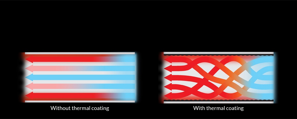 Термічне покриття створює мікротбулентність із спеціальною структурою поверхні. У поєднанні зі зміненим теплом труби призводять до оптимізованого теплового розсіювання та підвищення ефективності охолодження.