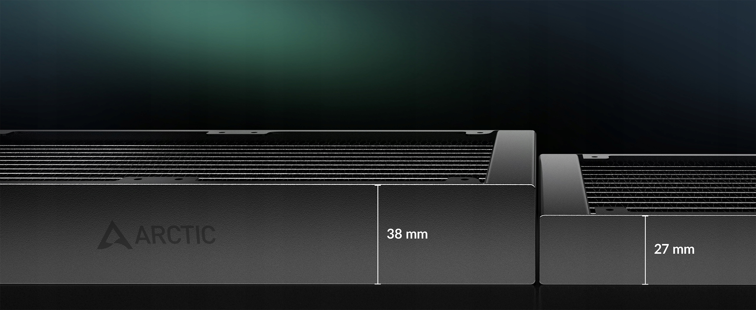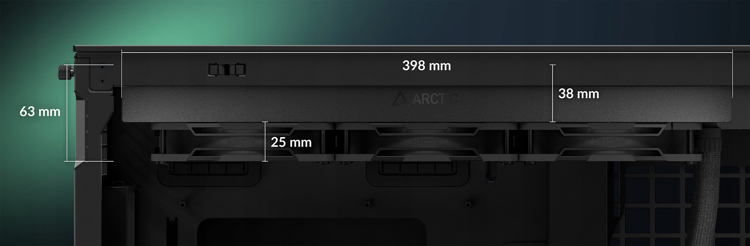 Три 120 мм P12 Pro -rgb вентилятори, що працюють над 360 -мм тепловідвідкою, забезпечують надзвичайно ефективне теплове розсіювання від процесора. Тепловод із збільшенням щільності ребер (понад 20% порівняно з попередніми версіями) гарантує ефективну термічну обмін навіть у найбільш вимогливих ігрових конфігураціях та робочих станціях
