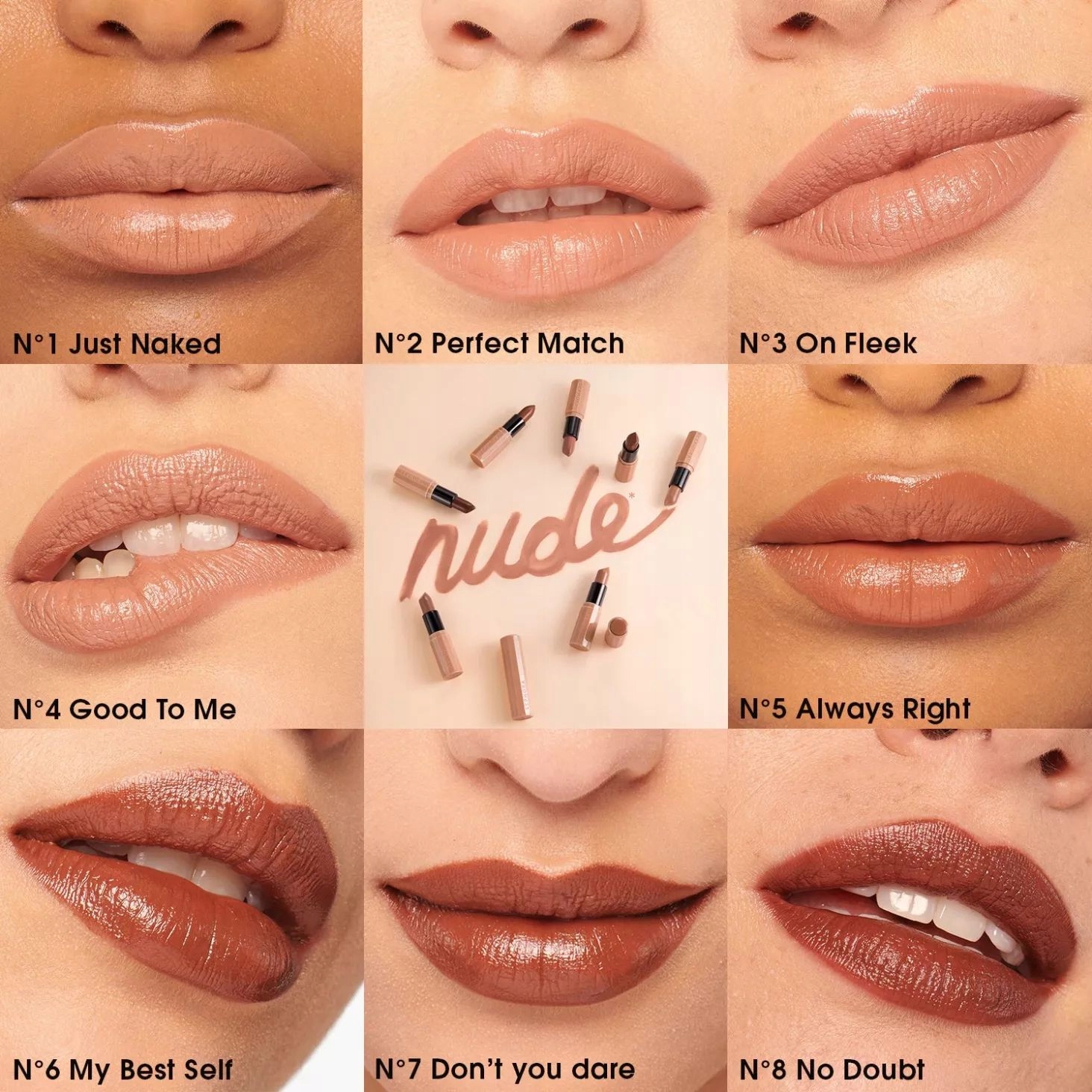 Нюдові відтінки в новій унікальній колекції у 8 інтенсивних версіях із атласним покриттям. Ваші губи будуть підтягнуті та підкреслені ідеальним нюдовим відтінком.