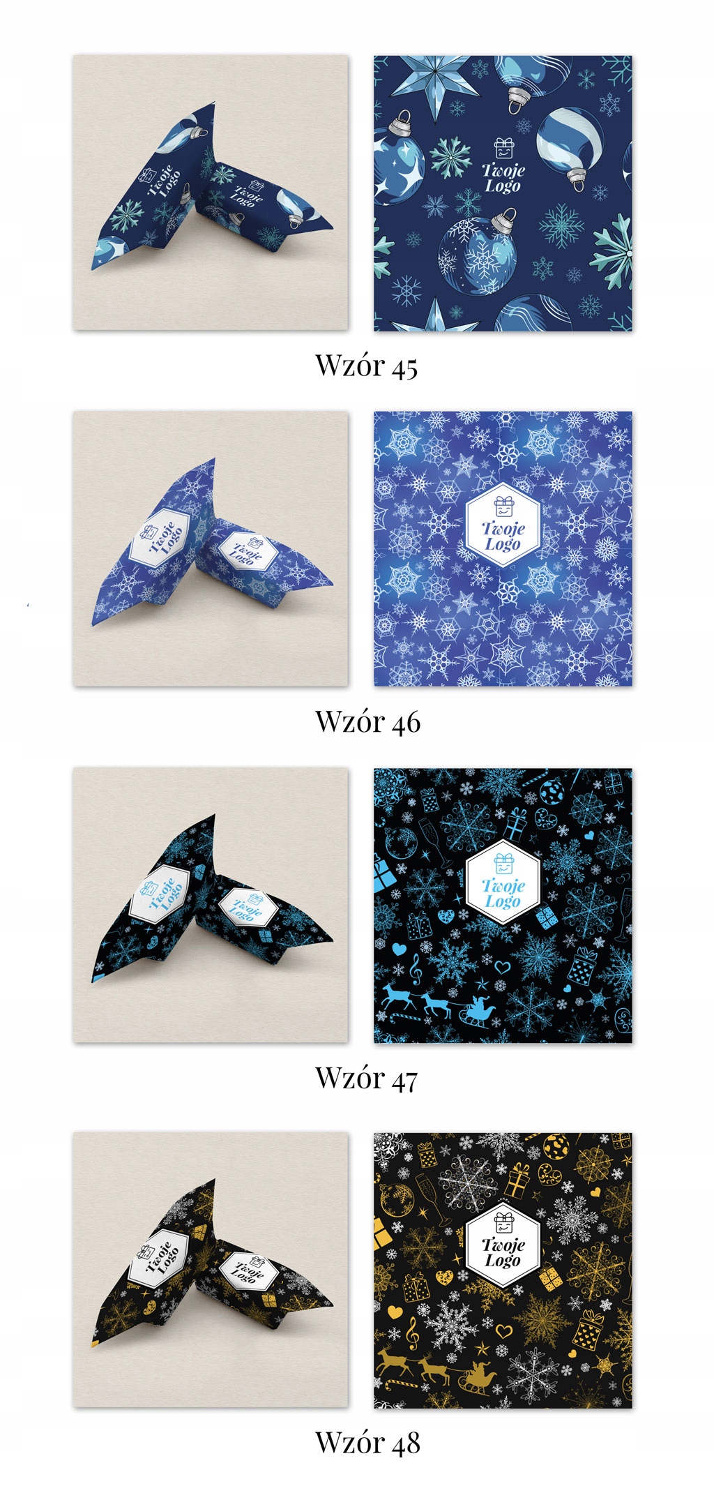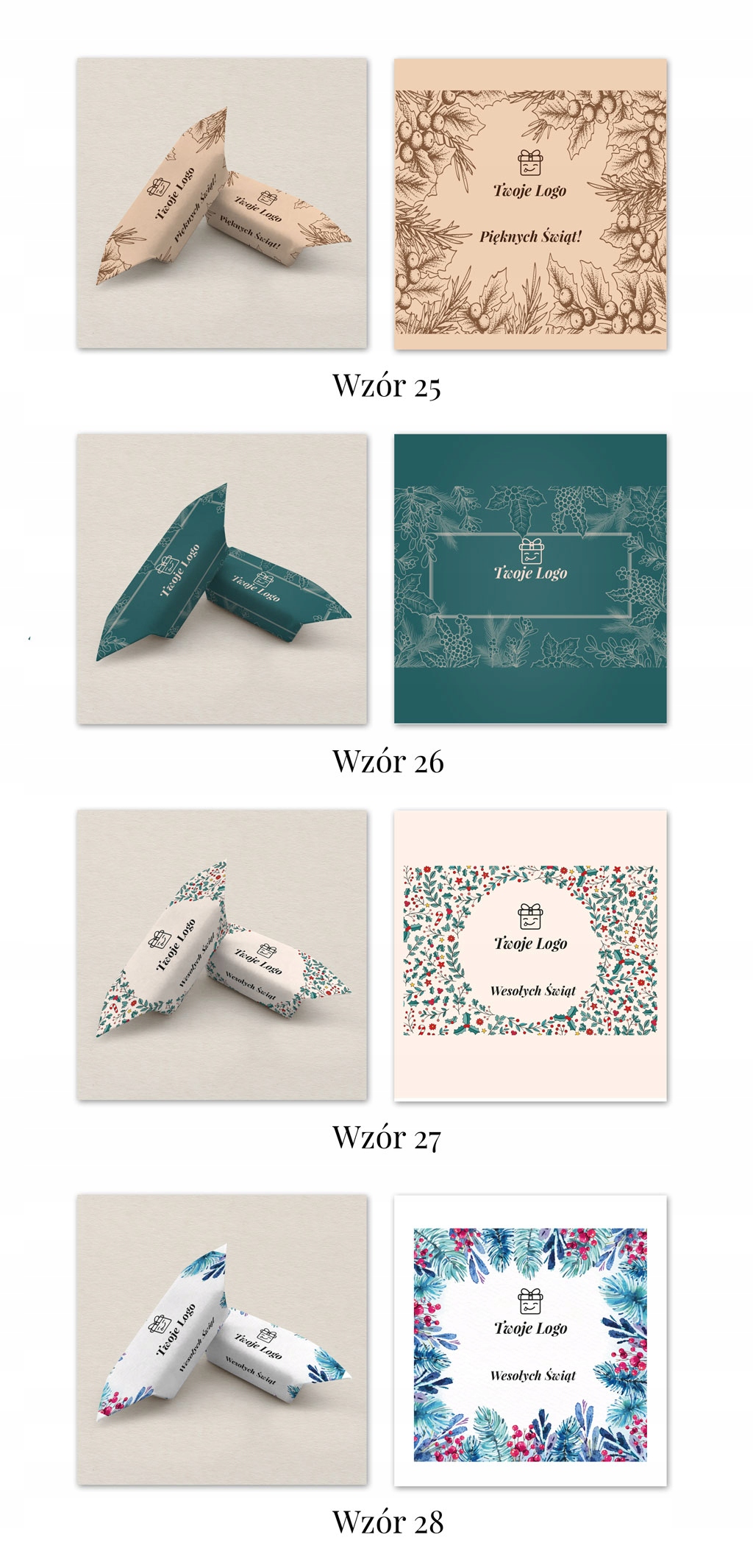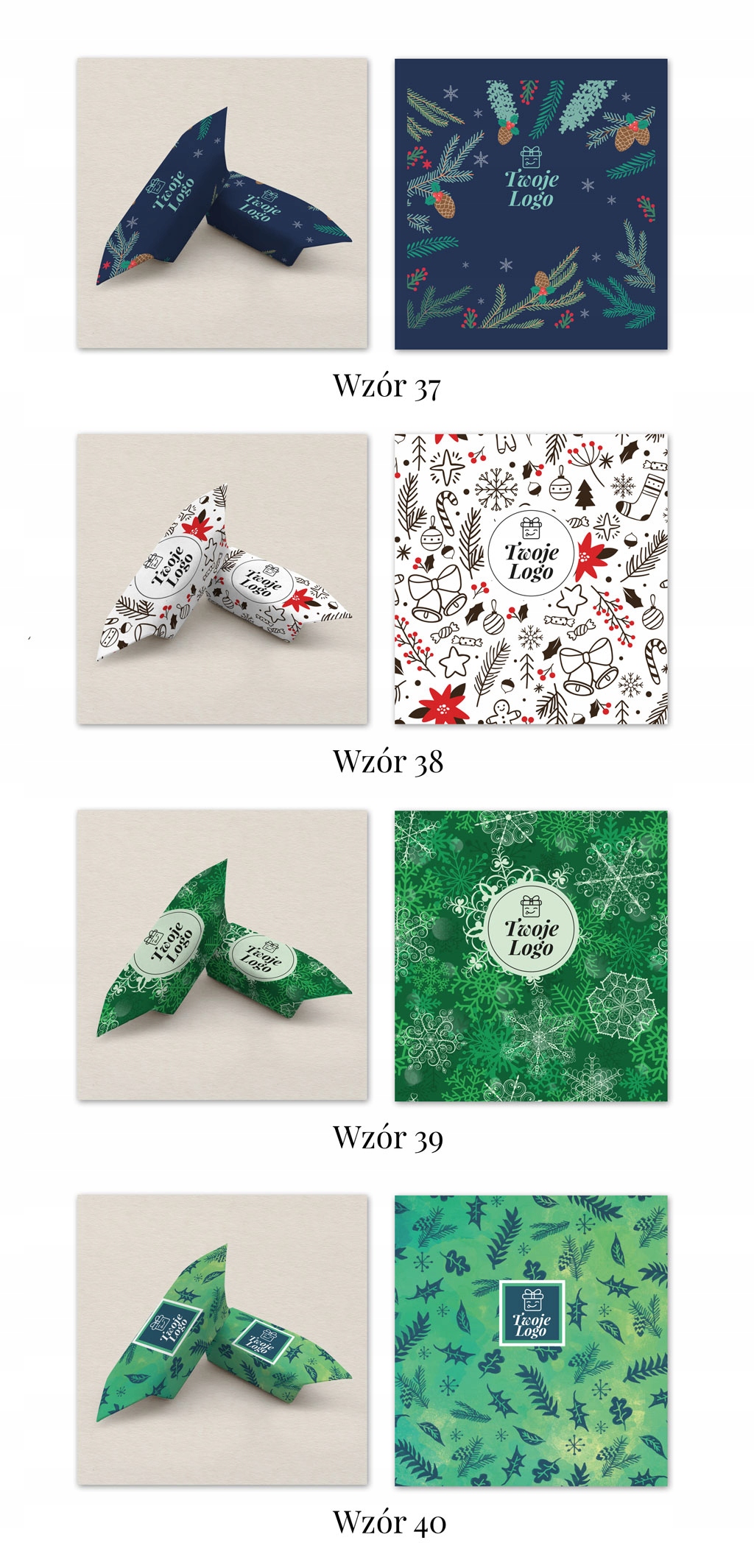 Кожна помадка загорнута в красивий папір із різдвяним мотивом. Ви можете додати власний напис, логотип або побажання, створюючи унікальний персоналізований подарунок, який порадує кожного одержувача.