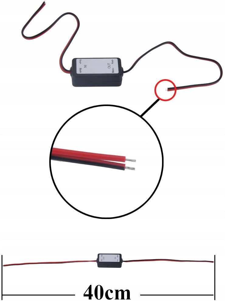 Дуже проста установка - просто встановіть фільтр у лінію живлення. Вхід (IN) і вихід (OUT) позначені на корпусі, а також позначено полярність.