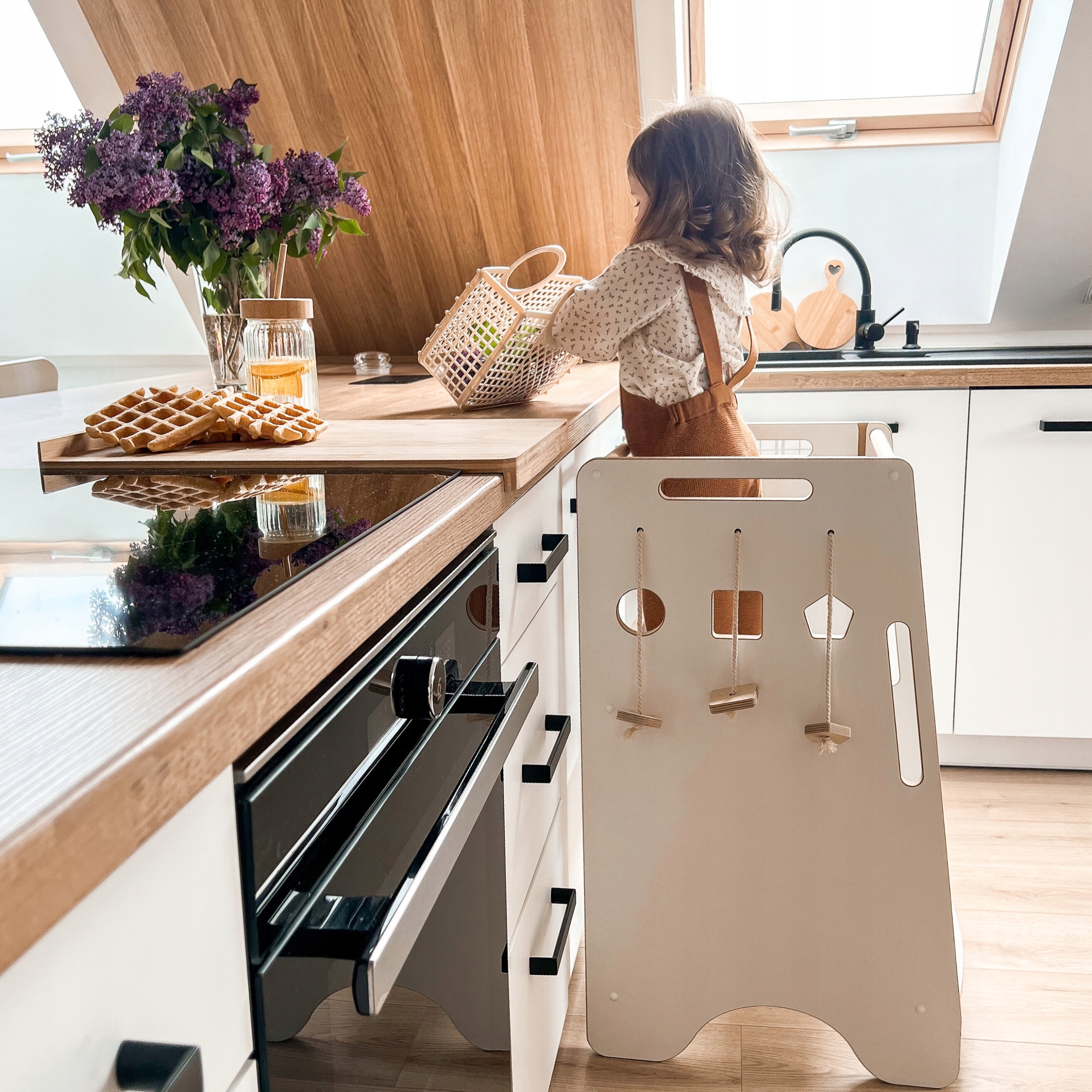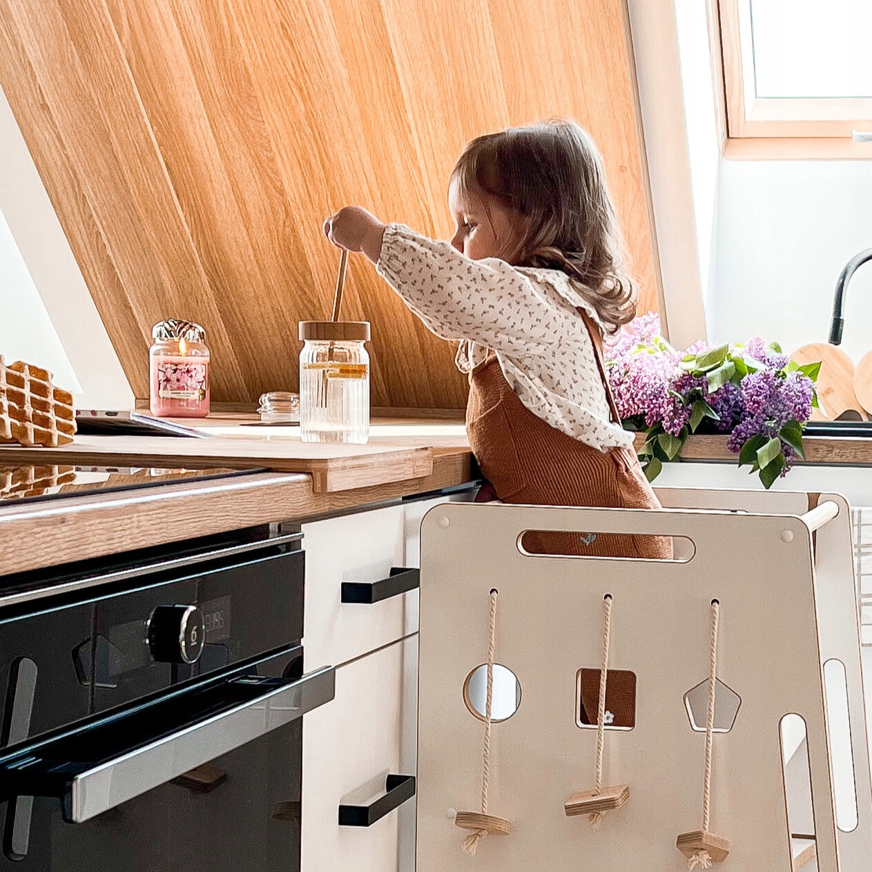 - Kitchen Helper дозволяє безпечно розкрити самостійність, креативність і креативність дитини під час роботи на кухні разом з батьком. Це відповідає філософії Монтессорі, яка так цінується в наш час.