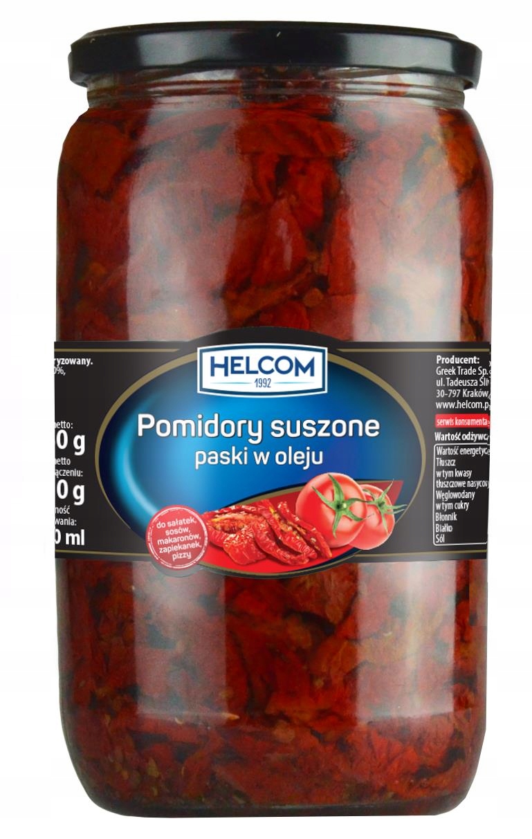 Просматривая «ПОМІДОРИ СУШЕНІ СМУЖКИ В ОЛІЇ HELCOM 650Г», вы можете быть уверены, что данный товар из каталога «Маринованные овощи» будет доставлен из Польши и проверен на целостность. В цене товара, указанной на сайте, учтена доставка из Польши. Внимание!!! Товары для Евросоюза, согласно законодательству стран Евросоюза, могут отличаться упаковкой или наполнением.