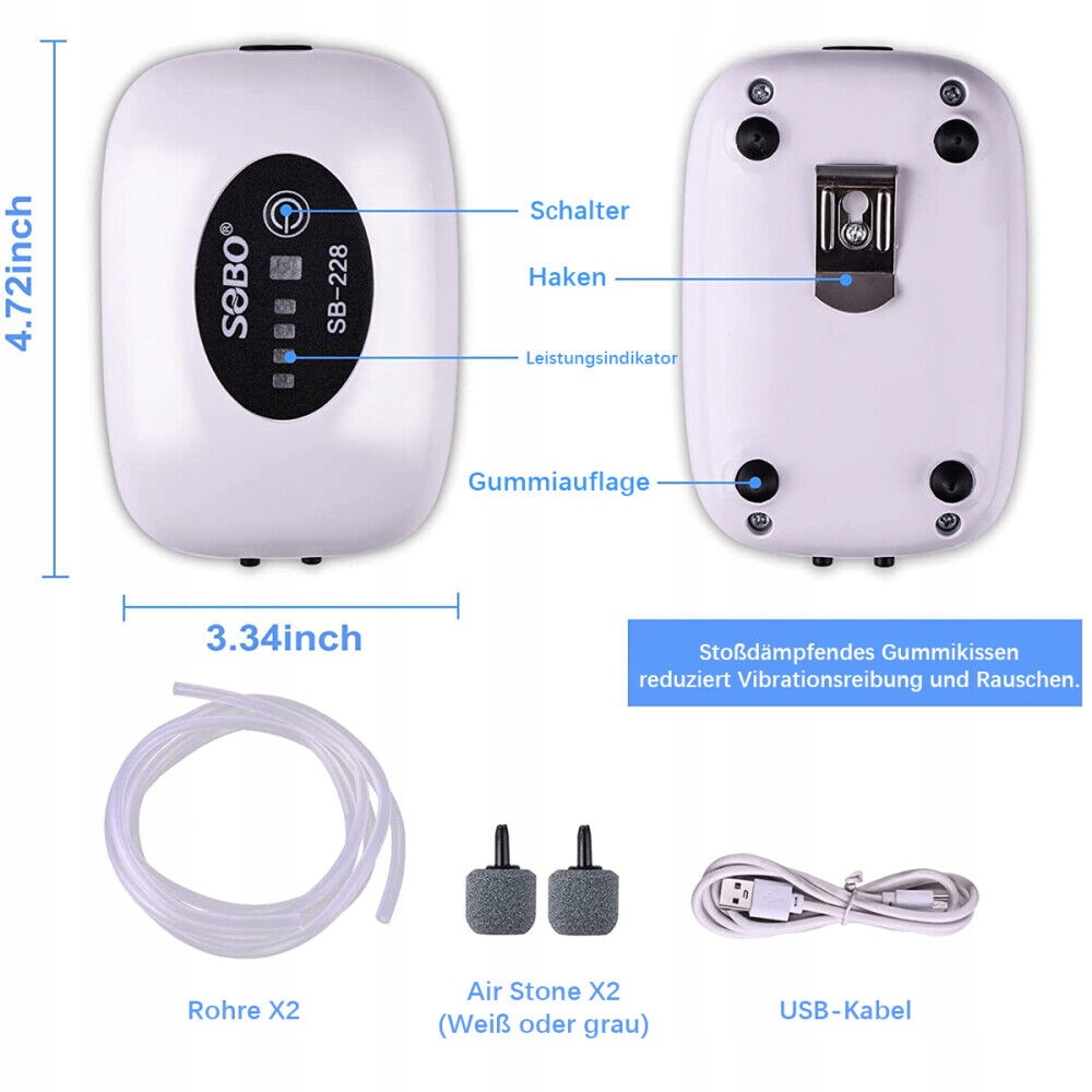 POMPA POWIETRZA DO AKWARIUM Z REGULACJĄ WYDAJNOŚ 4800mAh