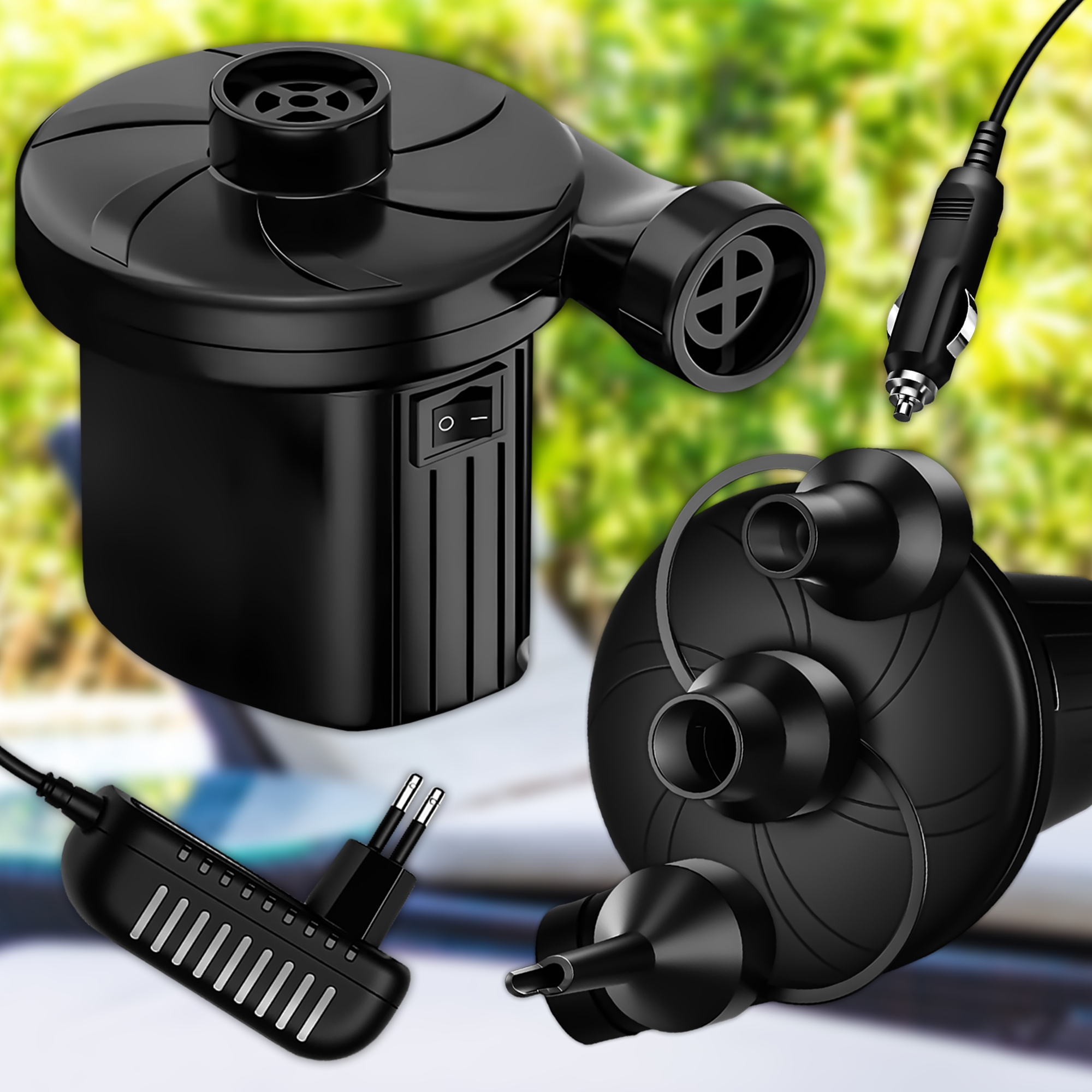 POMPKA ELEKTRYCZNA DO MATERACA BASENU 12V/230V 2W1 + 3 KOŃCÓWKI