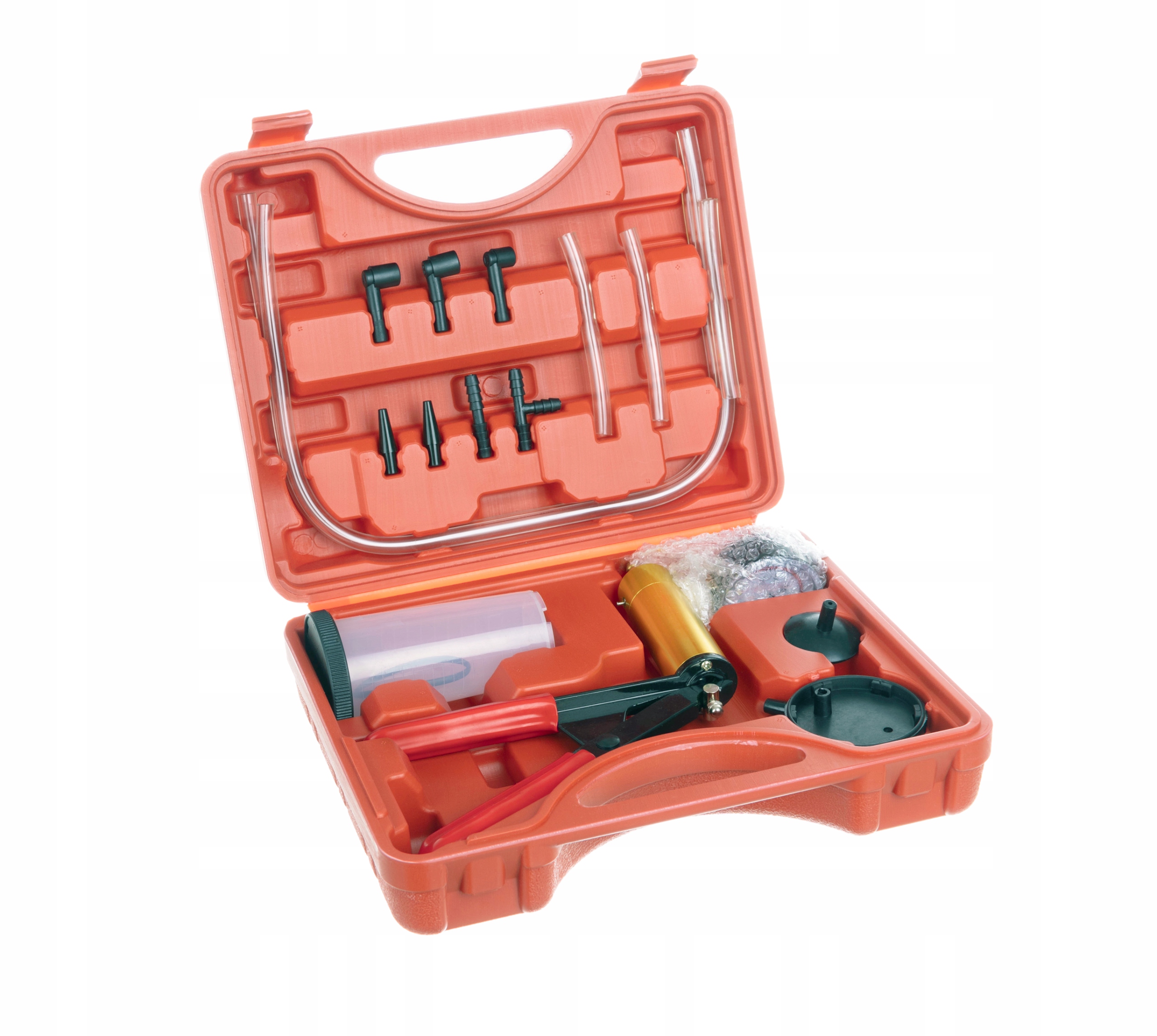 Ручний насос тиску та вакууму – це пристрій із багатьма застосуваннями. Створює вакуум до -1 БАР. Використовується для перевірки систем автомобіля, робота яких заснована на негативному тиску. Набір дозволяє діагностувати всі дизельні та бензинові двигуни внутрішнього згоряння практично в будь-якому двигуні чи системі.