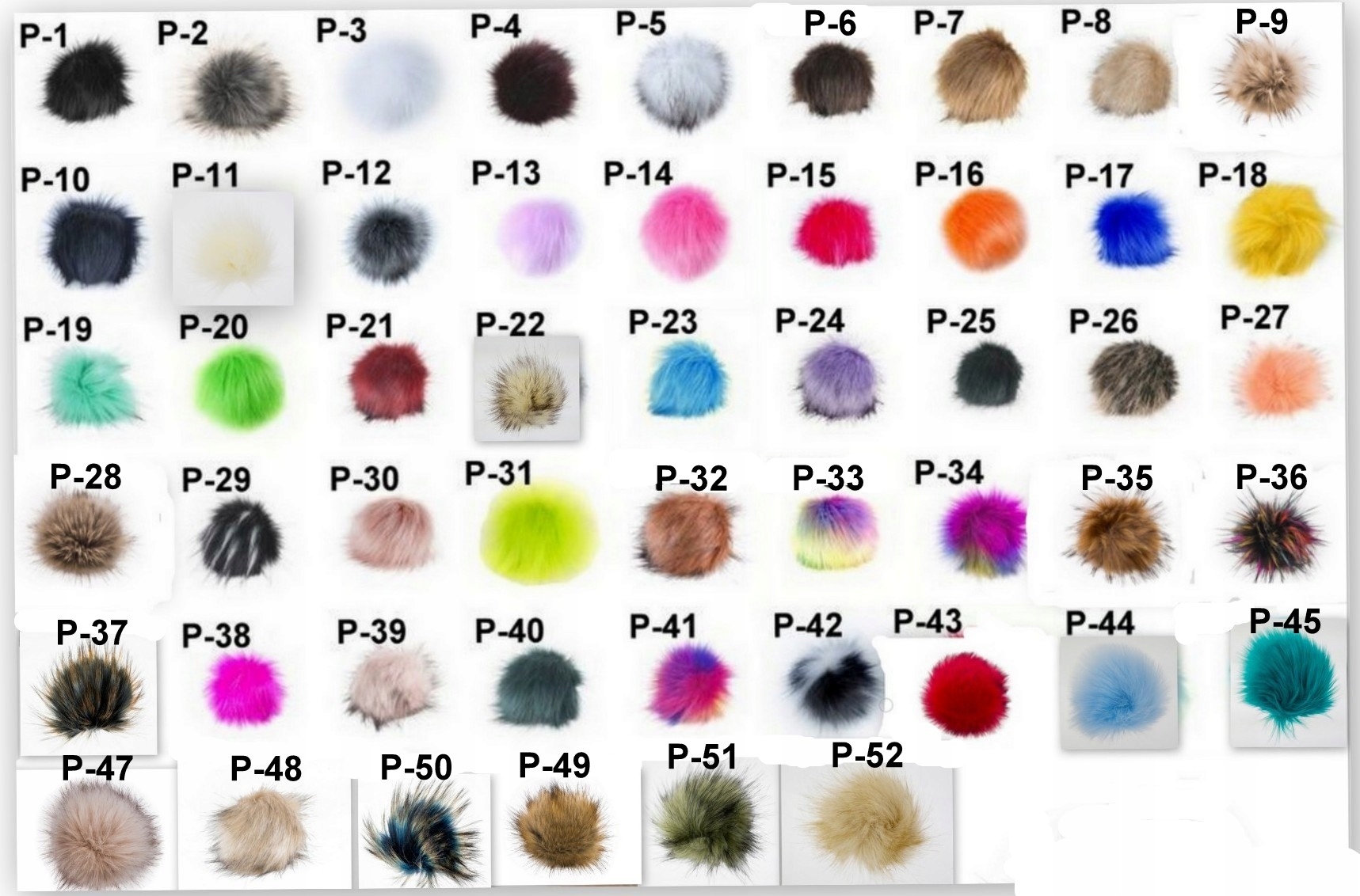 Помпони виготовлені з довговорсового хутра, що імітує песець (практично не розрізняються)