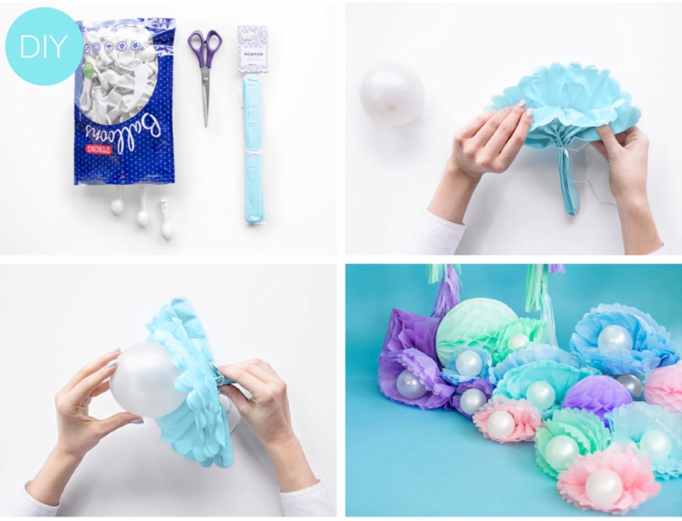 Помпон з цигаркового паперу, день народження, рік, синій. 25 см