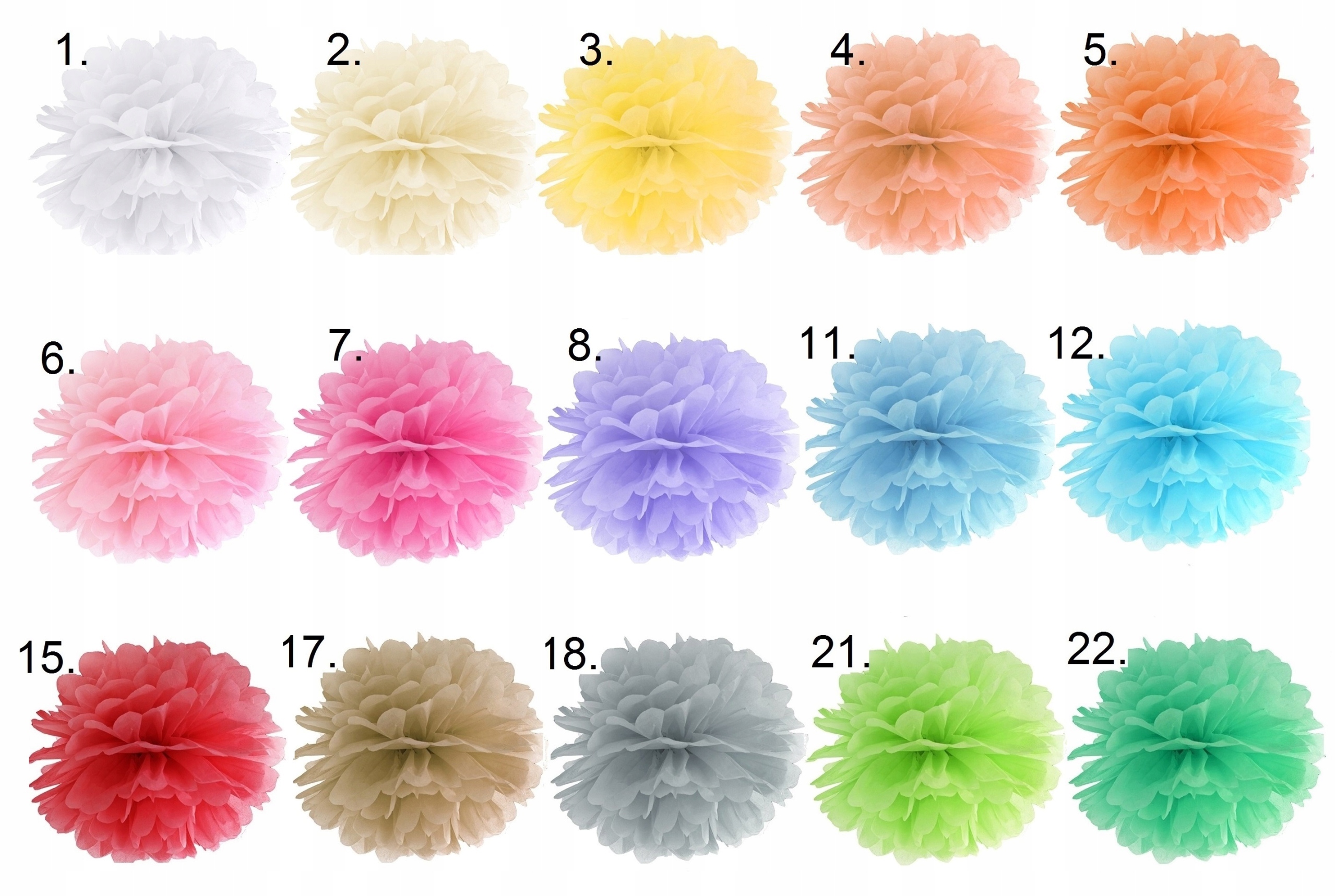 Ми пропонуємо наступні кольори помпонів - після покупки оберіть колір/кольори помпонів