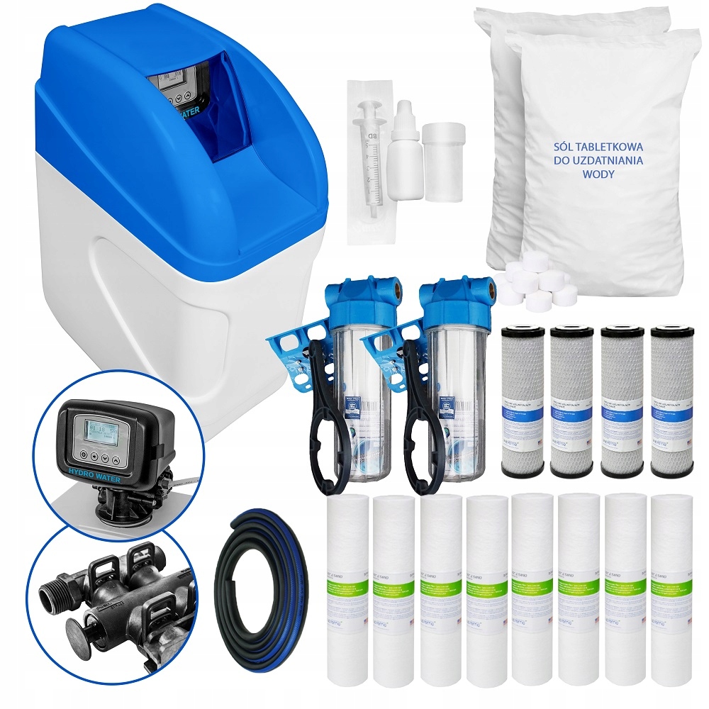 PREMIUM PACK - набір попереднього та вугільного фільтрів з запасом картриджів на два роки, сумка таблетованої солі 25 кг та тестер жорсткості води та каналізаційний шланг!!!