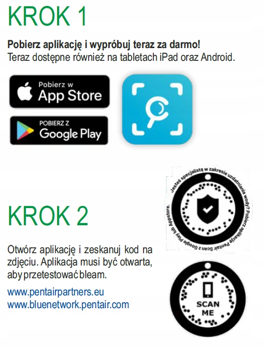 Завдяки програмі Scan Pentair, ви отримаєте доступ до поточної бази продуктів щодо продукту. Додаток Scan Pentair дозволяє отримати доступ до: інструктивних фільмів, інструкцій та поточної інформації про його продукцію.
