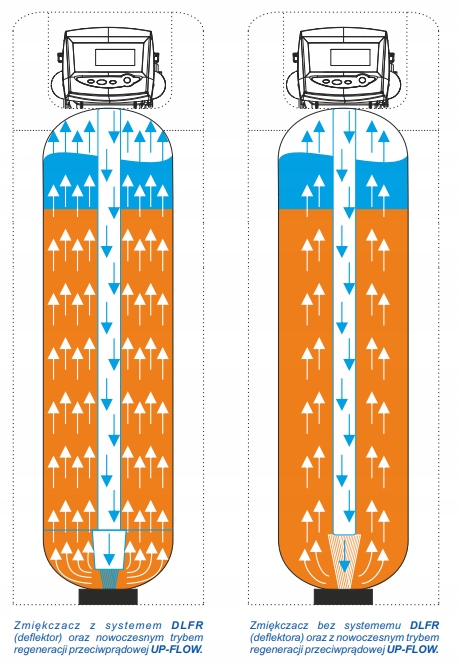 Сучасна регенераційна система "Потока", Система дефлекторної системи (DLFR) та можливість забезпечення "змінної функції резерву" призводять до того, що системи серії Supreme-Logiq споживають невелику кількість солі та води протягом усього циклу регенерації .