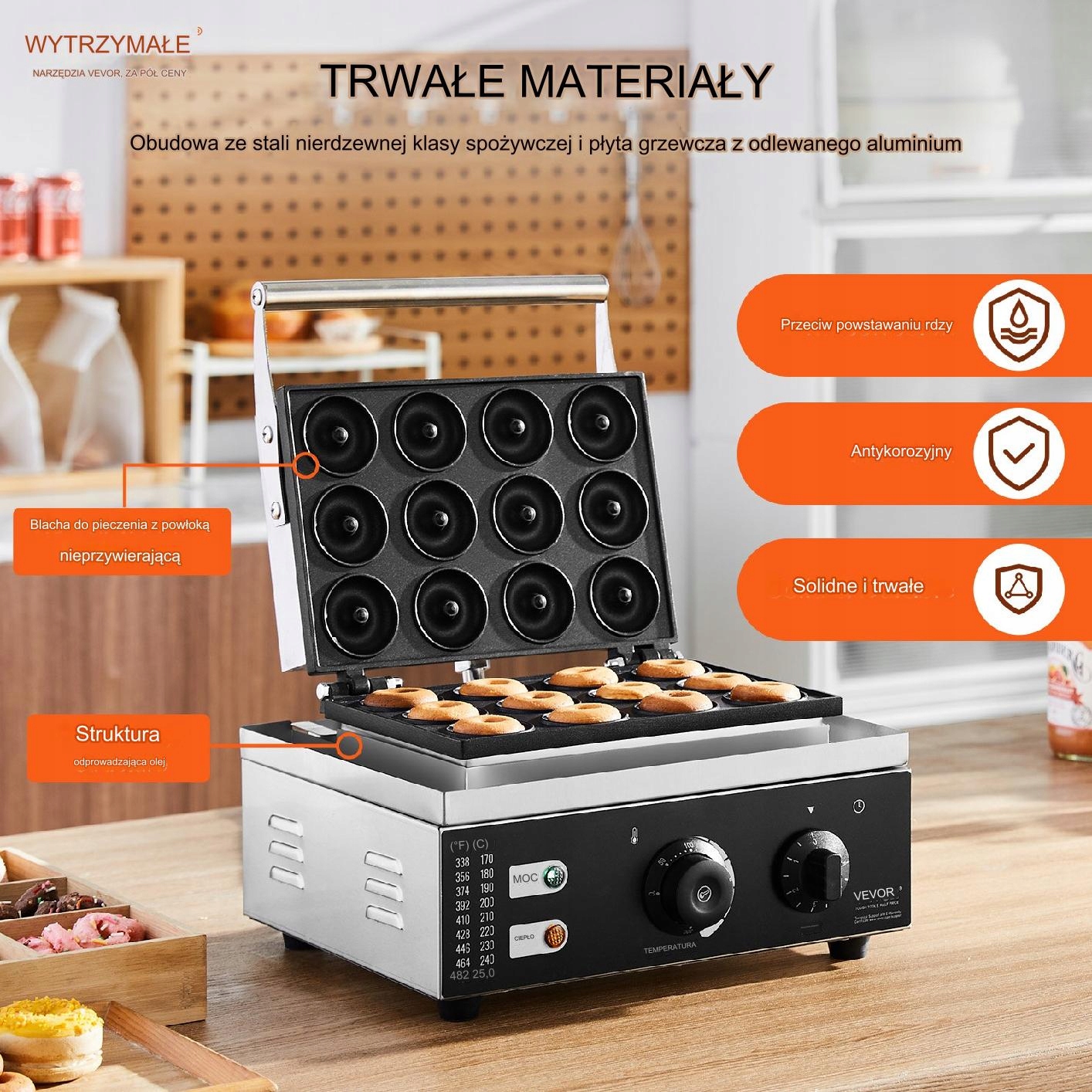 - ✅ Нендискне тефлонове покриття полегшує очищення та забезпечує ідеальну форму пончиків