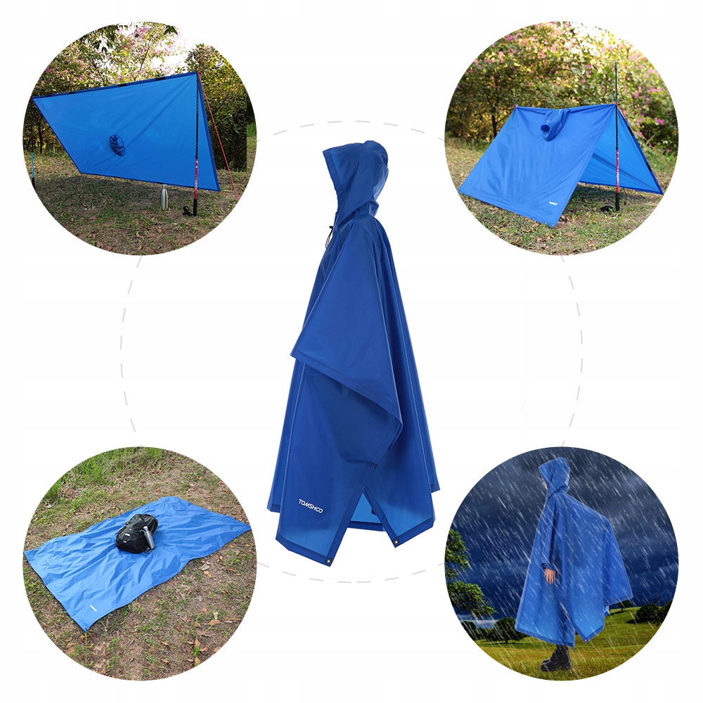 Це пончо є не лише дощовиком, але також може використовуватися як килимок для туристичного намету чи парасолька від сонця. Він виготовлений з високоякісного поліестеру 210D, водонепроникного та легкого. Це ідеальний варіант для кемпінгу на природі, альпінізму, туристичного туризму, пікніка тощо.
