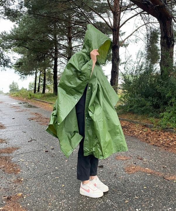 - Захист від дощу та вітру - Poncho ідеально захищає від дощу , а також від вітру . Завдяки застряглим швам, він захищає від витоку навіть у чутливих місцях , що збільшує комфорт використання . Легкий дизайн дозволяє легко рухатися та швидко поширитись, якщо це необхідно, що робить його ідеальним для непередбачуваних погодних умов під час активності на свіжому повітрі.