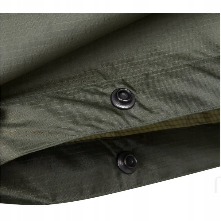 Пончо має кнопки для виготовлення рукавів або з'єднання двох однакових накидок разом. Капюшон оснащений шнурком. Вільний, просторий крій дозволяє носити їх поверх будь-якого одягу та головних уборів, навіть якщо носити рюкзак чи інше спорядження.