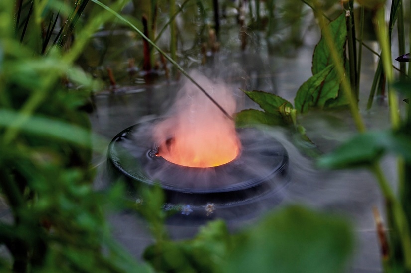 Енергія -Посадка Pondofog Fogher, оснащений барвистим світлом RGB, забезпечує захоплюючу комбінацію туману та світла, як всередині, так і зовні для використання у фонтанах, суглобах або ставках. Розміщений безпосередньо у фонтану, він створює унікальну атмосферу та склад світла, води та туману. Повний набір включає туман, плаваюче кільце та трансформатор з 10 -метровим кабелем. Фаммер для зовнішнього та внутрішнього використання, ступінь захисту IP68.