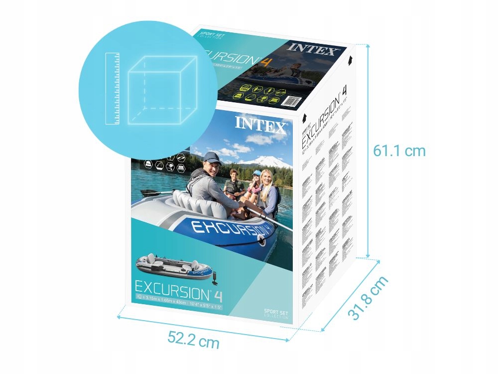 Excursion 4 від Intex виготовлено з міцного та довговічного вінілового матеріалу - SuperStrong PVC забезпечує чудову міцність, високу стійкість до ударів та стирання. Підлога в понтоні надувна, а для зручності використання він обладнаний надувними сидіннями зі спинками .