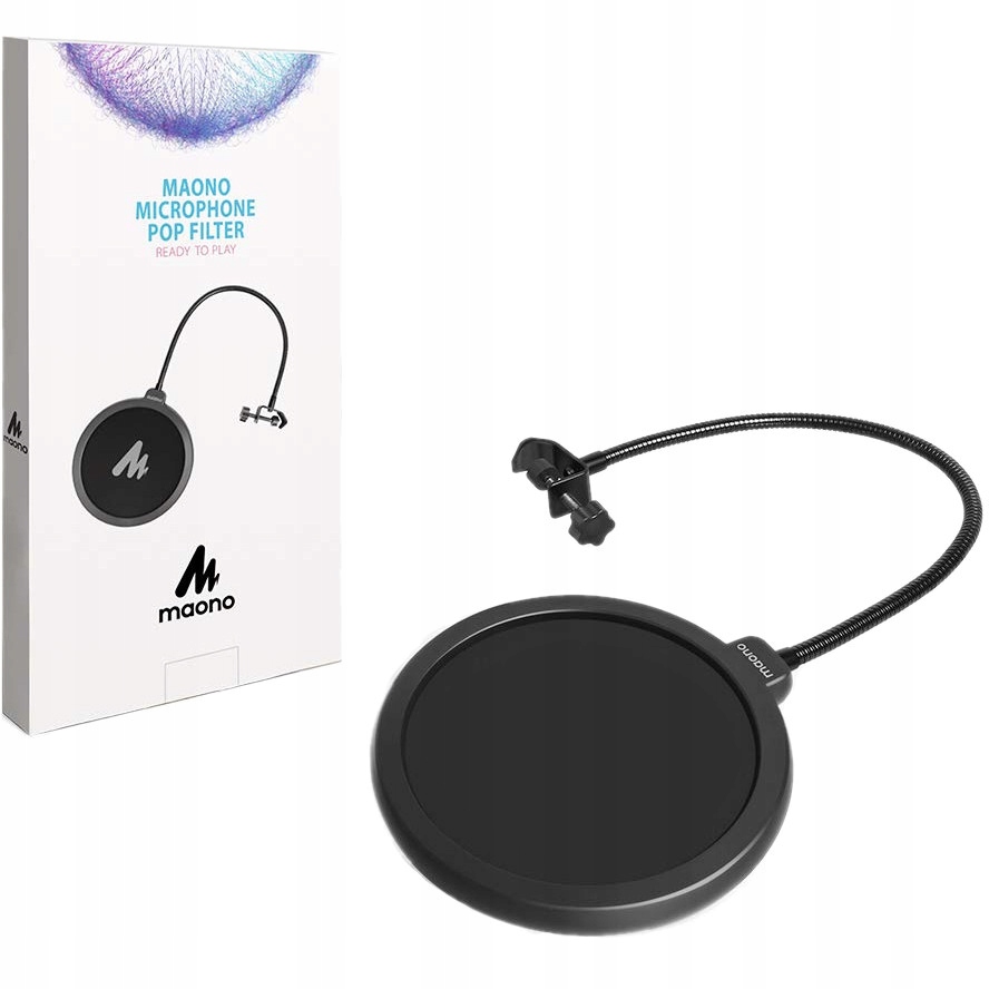 Регульований затискач стабільно кріпиться до будь-якої мікрофонної стійки, столу, столу, полиці тощо. Поп-фільтр покращить роботу не лише в домашній студії звукозапису, але й у професійних, зокрема комерційних, програмах. У комплект входить чохол і затискач. Фільтр виготовлений із сітки, тканини, натягнутої на круглий металевий каркас. Фільтр розташований безпосередньо перед мікрофоном і пригнічує небажані звуки (переважно так звані вибухові) і захищає від накопичення слини чи іншого бруду на мікрофоні.