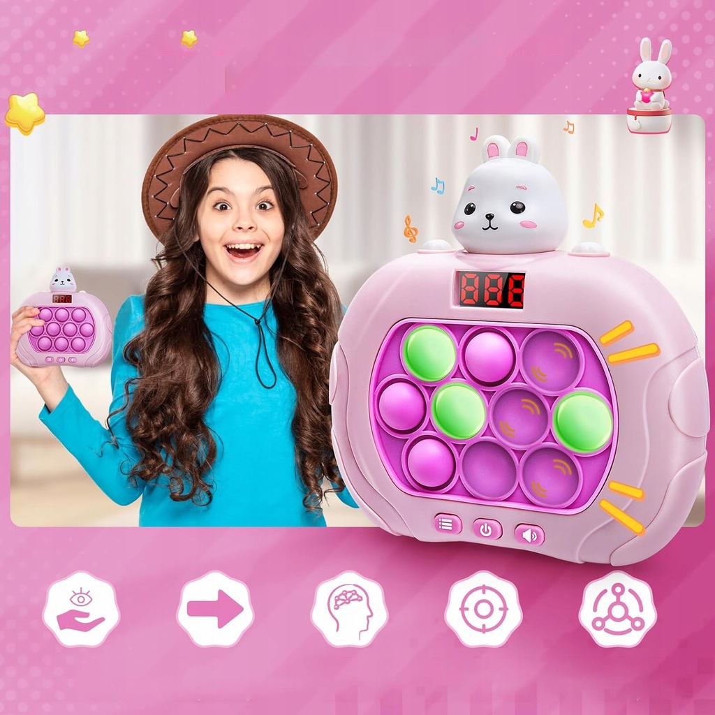Ця популярна гра підходить для тренування пам’яті та швидкості, ви повинні бути напоготові в будь-який час. Виведіть свою гру на новий рівень за допомогою спливаючого кролика! Ця іграшка водночас функціональна та весела, має такі розширені функції, як багаторівневі режими гри, матчі з високими результатами та портативність.