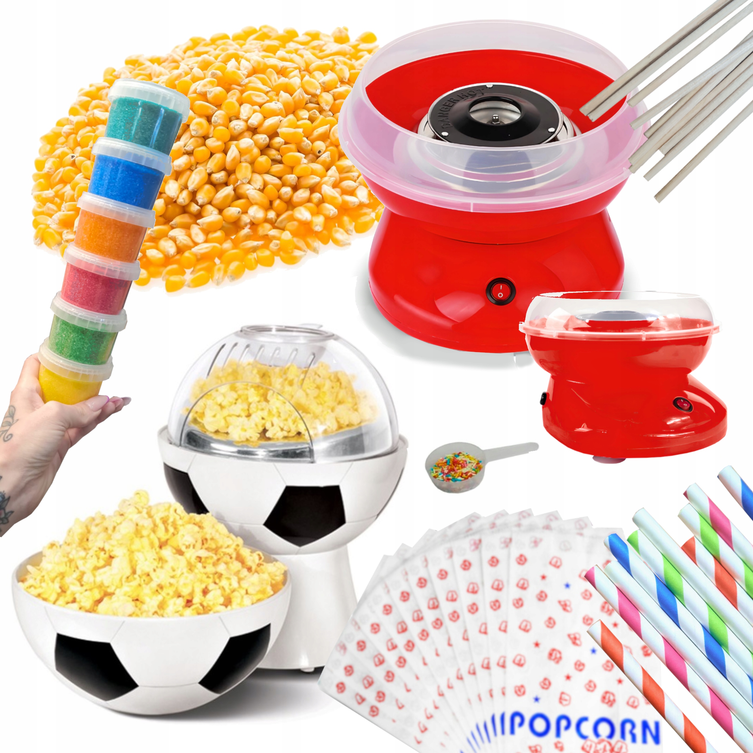 Машина для приготування цукрової вати та набір для приготування футбольного попкорну та аксесуари
