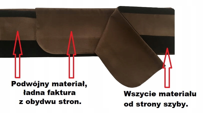 Поперечина виготовлена з подвійного матеріалу, тому немає так званої лівої сторони. Поперечина товщі, а тому менш проникає світло. Гарна текстура з обох сторін. Пришивання матеріалу з боку скла по всій довжині перекладини.