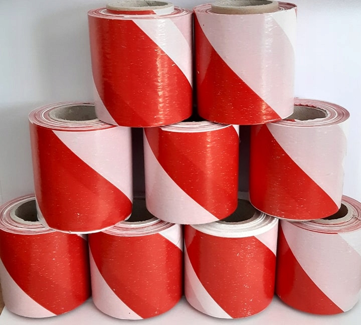 - Міцна одностороння попереджувальна стрічка, біло-червона,