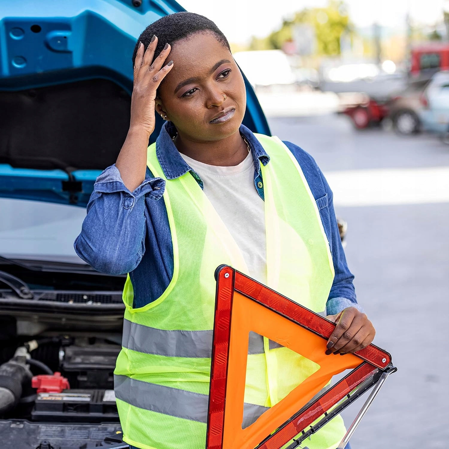Необхідний комплект безпеки в кожному транспортному засобі. Попереджувальний трикутник і світловідбиваючий жилет підвищують вашу видимість і безпеку в разі поломки або паркування на дорозі.