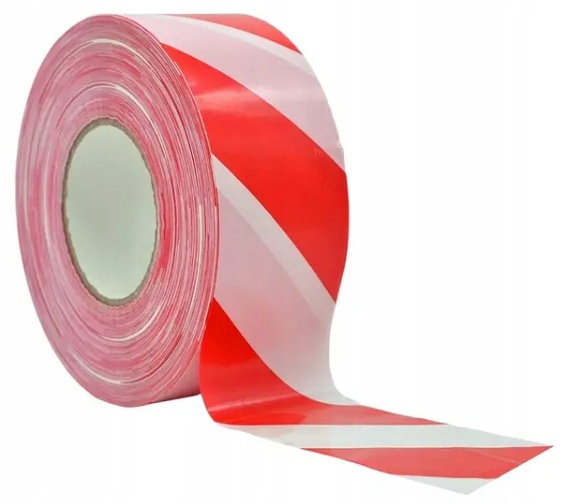 ПОПЕРЕДЖУЮЧА СТРІЧКА Біло-червона 200м 70мм МІЦНА ФОЛЬГОВА СТРІЧКА