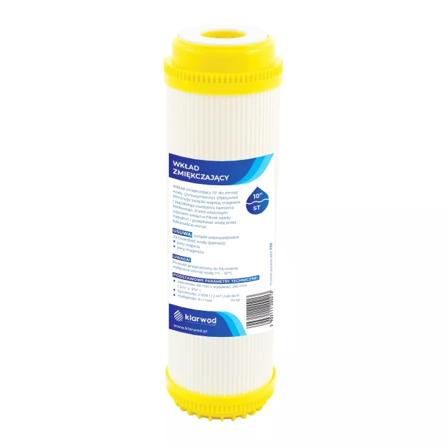 Картридж для пом’якшення води, який використовується в проточних системах очищення води та в 10-дюймових стандартних вбудованих корпусах фільтрів. Встановлено для зменшення жорсткості води, що призводить до зменшення відкладень накипу в установці, арматурі та побутових приладах (включно з чайниками).