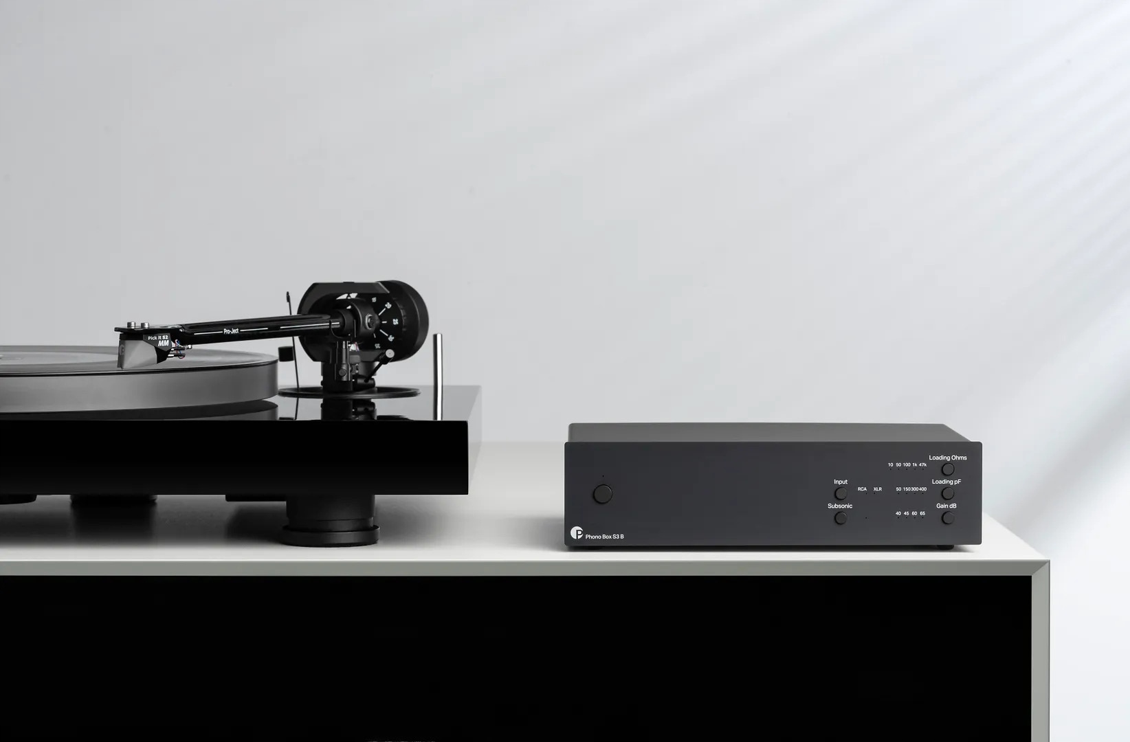 Порівняно з лінійкою S2, усе можна легко налаштувати з передньої панелі . Є можливість підключити дві вертушки або кронштейни одночасно. Параметри введення зберігаються в пам'яті. Попередній підсилювач дозволяє вибирати з широкого діапазону підсилення від 40 дБ до 65 дБ. Це важливо і виконує свою роботу в збалансованому з’єднанні. Phono Box S3 B можна ідеально підключити до широкого діапазону картриджів і ідеально інтегрувати з рештою вашої системи HiFi, точно підбираючи рівні гучності для інших джерел, таких як програвачі компакт-дисків або потокові пристрої. Варіанти завантаження MM і MC призначені для розміщення найширшого діапазону картриджів, можливих у Phono Box S3. Надзвичайно низькі значення, такі як 50 пФ або 10 Ом, дозволяють враховувати особливі ситуації, такі як кабелі з більшою ємністю. Phono Box S3 B завжди гарантує, що ви виберете правильну конфігурацію.
