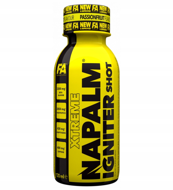 Це найвища якість, вдосконалена підготовка до тренування. Ретельно вдосконалена композиція означає, що Napalm не тільки дає дивовижний "удар" перед тренуванням, але й забезпечує ефект "м’язового насоса" і значно збільшує силу м’язів. Стандартні інгредієнти, тобто кофеїн та таурин, відповідають за енергію та мінімізують втому. Аргінін, у свою чергу, викликає розширення судин, а також краще кровопостачання, що забезпечує набагато ефективніше транспортування поживних речовин до внутрішніх м'язових клітин, а також оксигенації м’язів. Запатентована, бета-аланінова форма найвищої якості ще більше збільшує силу м’язів і підвищує загальну ефективність.