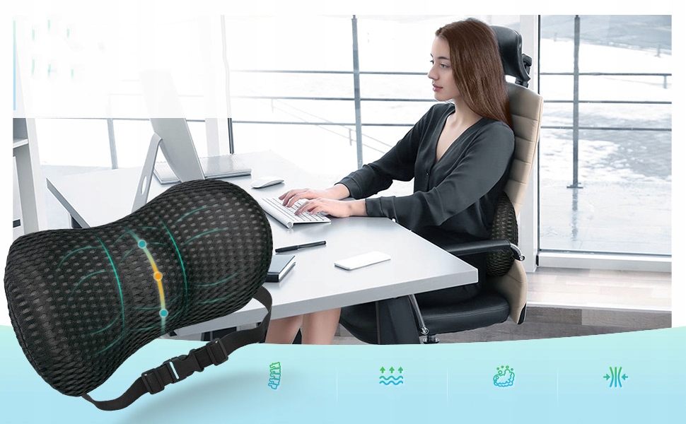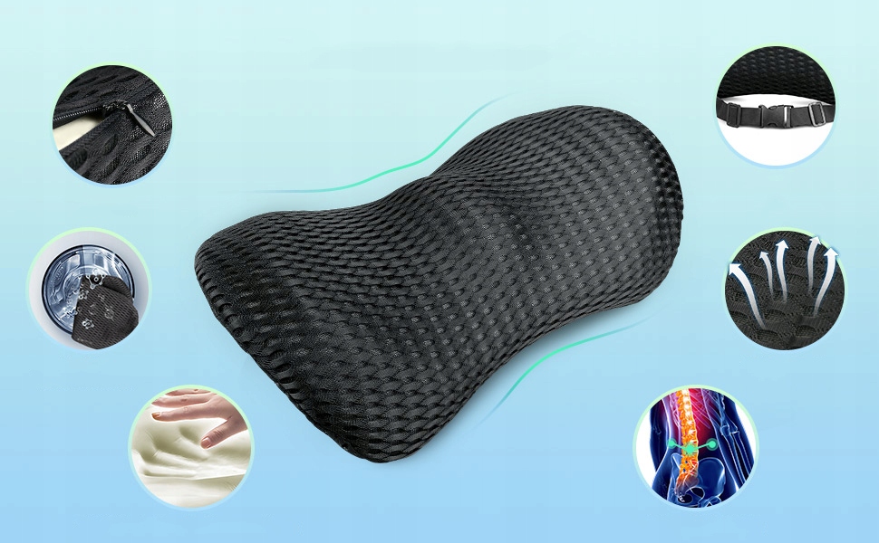 - ☁-eragonomic Lumbar подушка заспокоює біль від середньої та нижньої частини спини, сприяє правильній поставі та підтримує делікатну кривизну хребта, забезпечуючи більш зручну підтримку