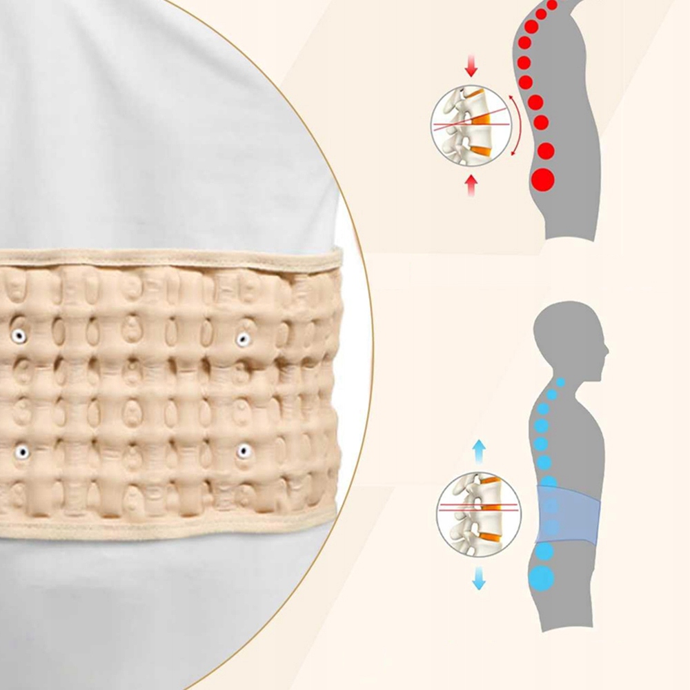 Ремінь містить багато пневматичних циліндрів, які після надуття переплітають нижню частину спини, створюючи арочну схему тяги, яка ефективно звільняє біль від нижньої частини спини, викликана грижею міжхребцевих диска, розтягуючи полюсні м’язи та тиск легких нервів.