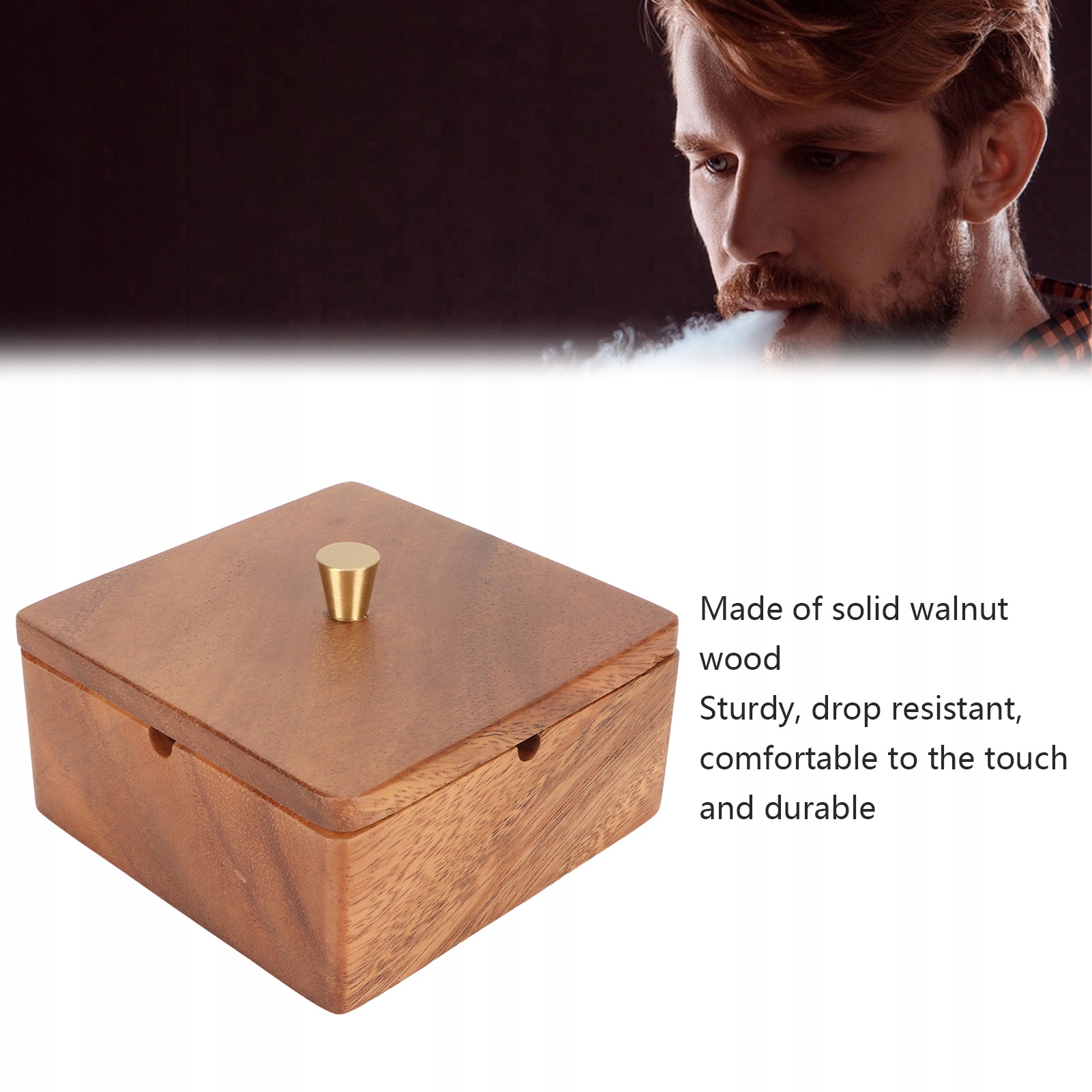 1. Матеріал із масиву горіхового дерева: ця попільничка для сигар, виготовлена з масиву горіхового дерева, є міцною, ударостійкою та зручною на дотик для довговічності.