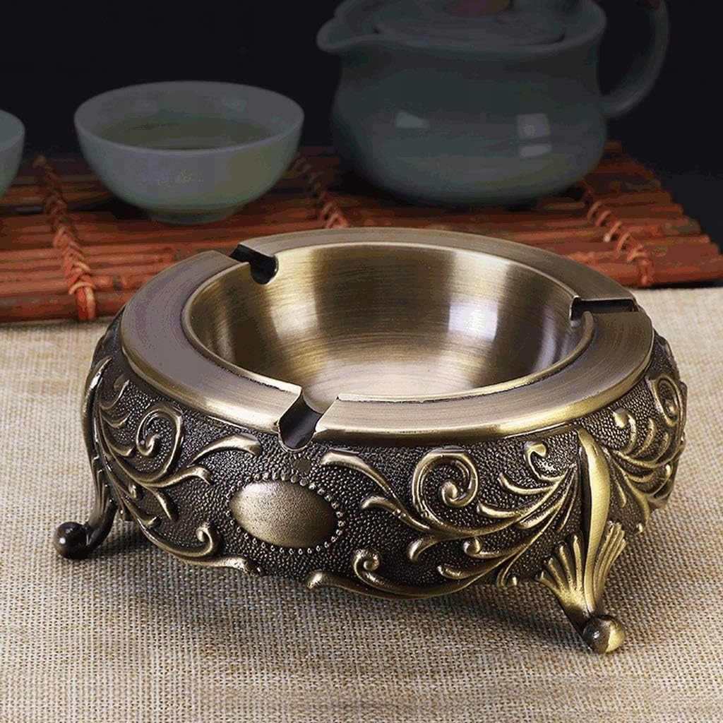 Високоякісна настільна попільничка з простим дизайном, довговічна та легко чиститься. Цільна мідь Виготовлена з міцної міді, ви можете безпосередньо натиснути, щоб загасити феєрверк, не пошкоджуючи мідний корпус. Зручно та практично. Попільничка з тривимірним гравіюванням використовує тривимірне гравіювання, поліроване вручну та кольорове з певним значенням ваги. Конструкція у формі барабана, внутрішня структура закриття у формі барабана, проста та красива, розумний розподіл простору, легка в очищенні та керуванні. Вбудовані три затискачі для нагару, після багатьох спроб легко затискають сигарети, дозволяючи вам вільно займатися своїми справами.