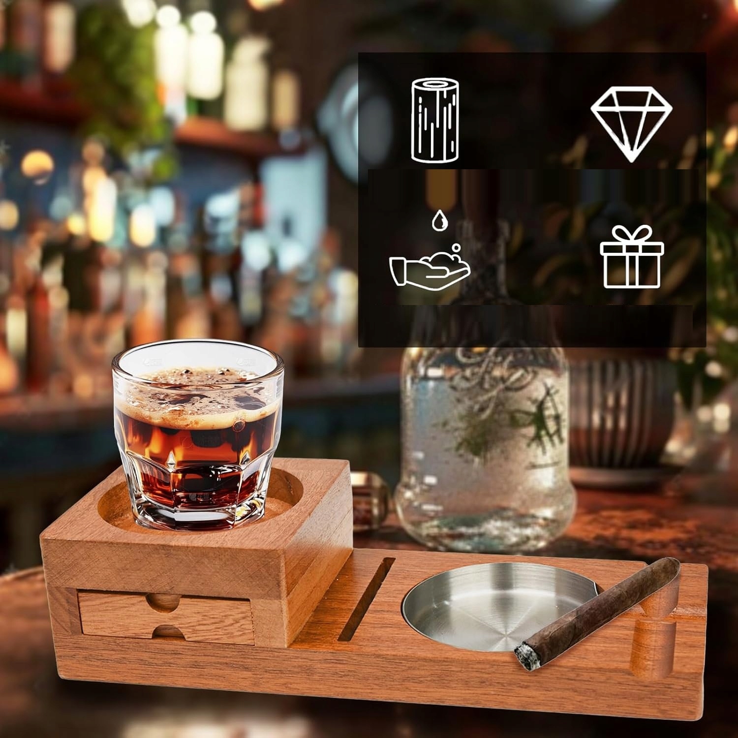 Елегантний піднос для сигар і попільничка з висувним ящиком + підставка для склянки для віскі 🔥