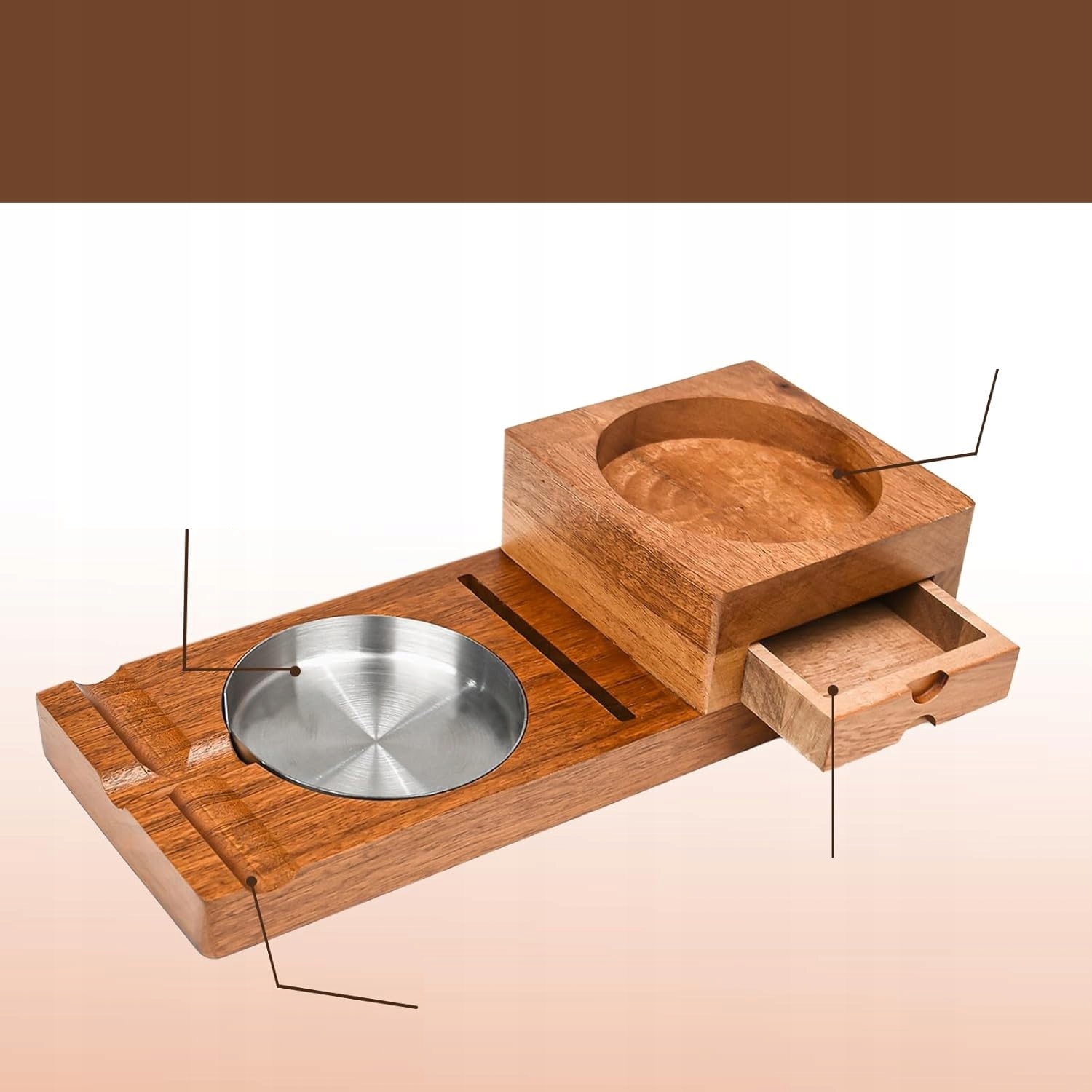 Стильний і функціональний піднос для сигар — ідеальний вибір для любителів розкоші та елегантності. Він має вбудовану попільничку, підставку під склянку для віскі та ящик для аксесуарів, що робить його ідеальним доповненням до кабінету, вітальні чи офісу.
