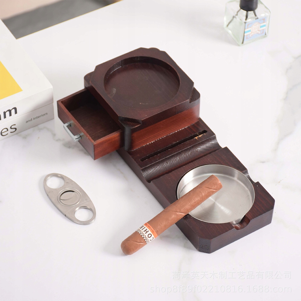 Ця знімна попільничка для сигар, виготовлена вручну з точно обробленої товстої деревини та алюмінію високої щільності, красива та довговічна. Це унікальна попільничка, створена спеціально для любителів сигар і є ексклюзивом для колекціонування. Його ключові характеристики – довговічність, зносостійкість, стійкість до падінь і водонепроникність.