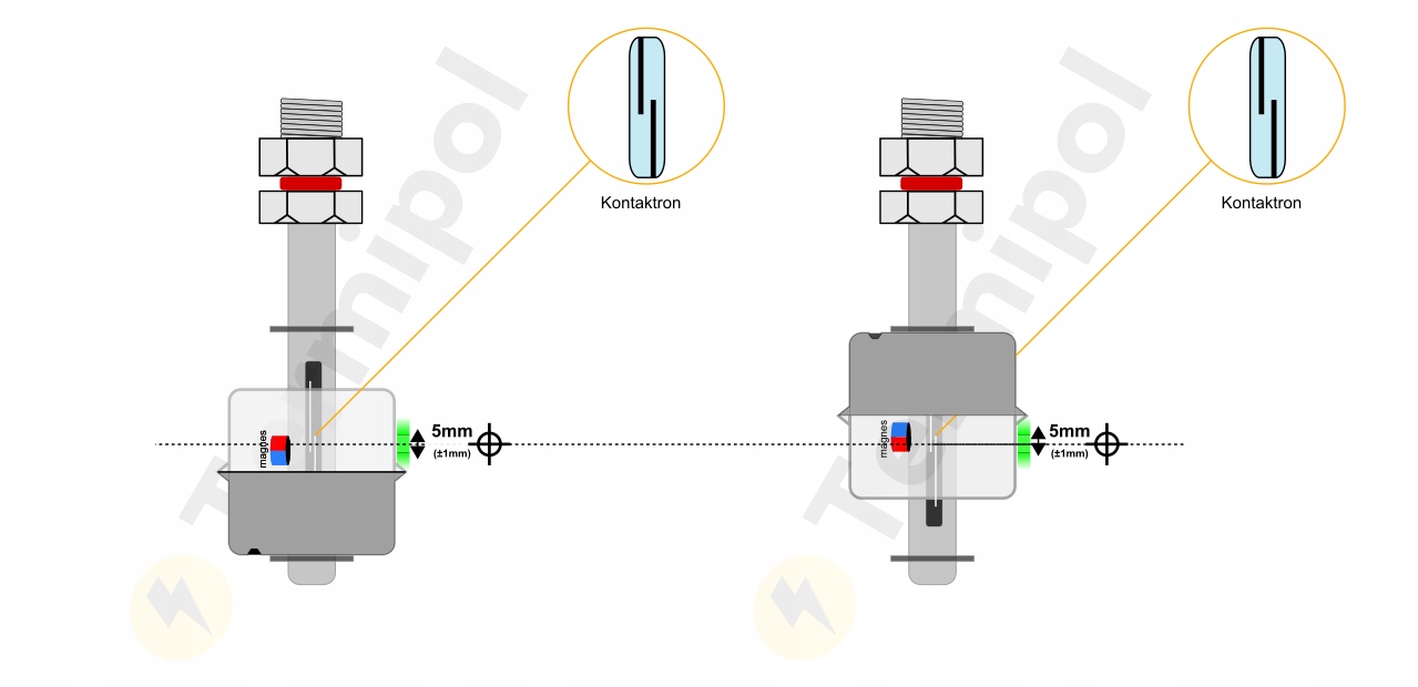 Датчики мають магніт, встановлений у поплавці, який, плаваючи, змушує контакт геркона, розташованого в корпусі трубки, замикатися або розмикатися. Датчики можуть працювати як NC - нормально закритий або NO - нормально відкритий. Режим роботи можна змінити поворотом поплавця на 180°.